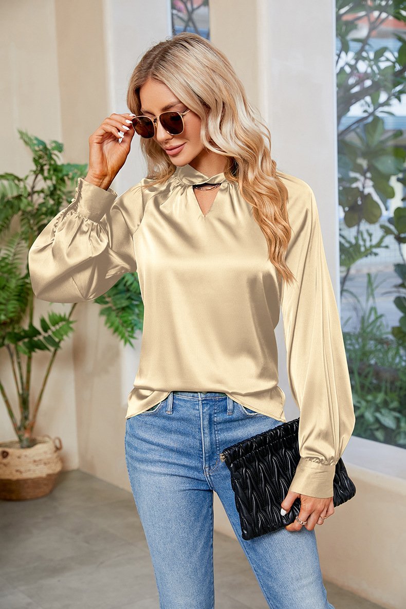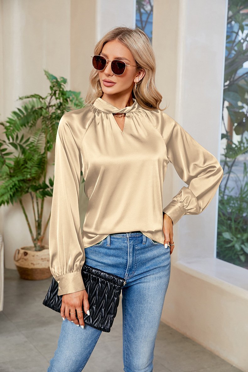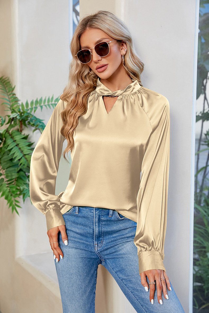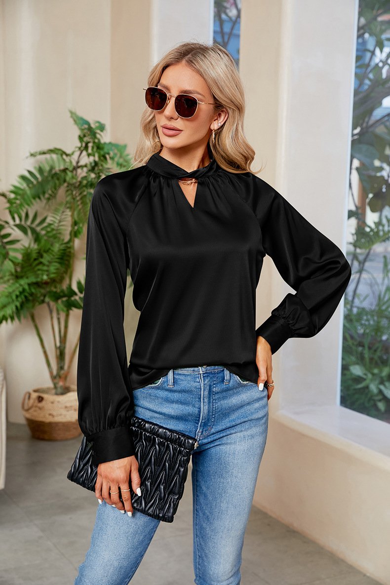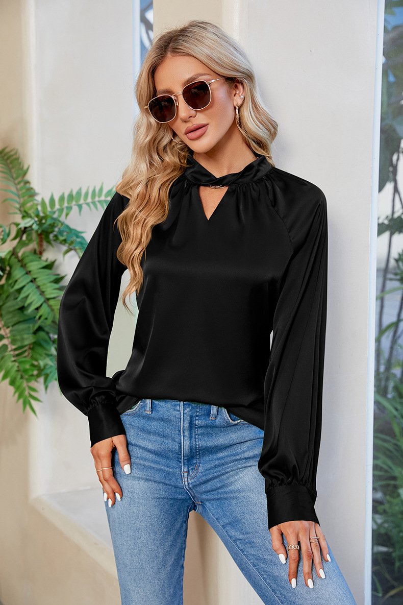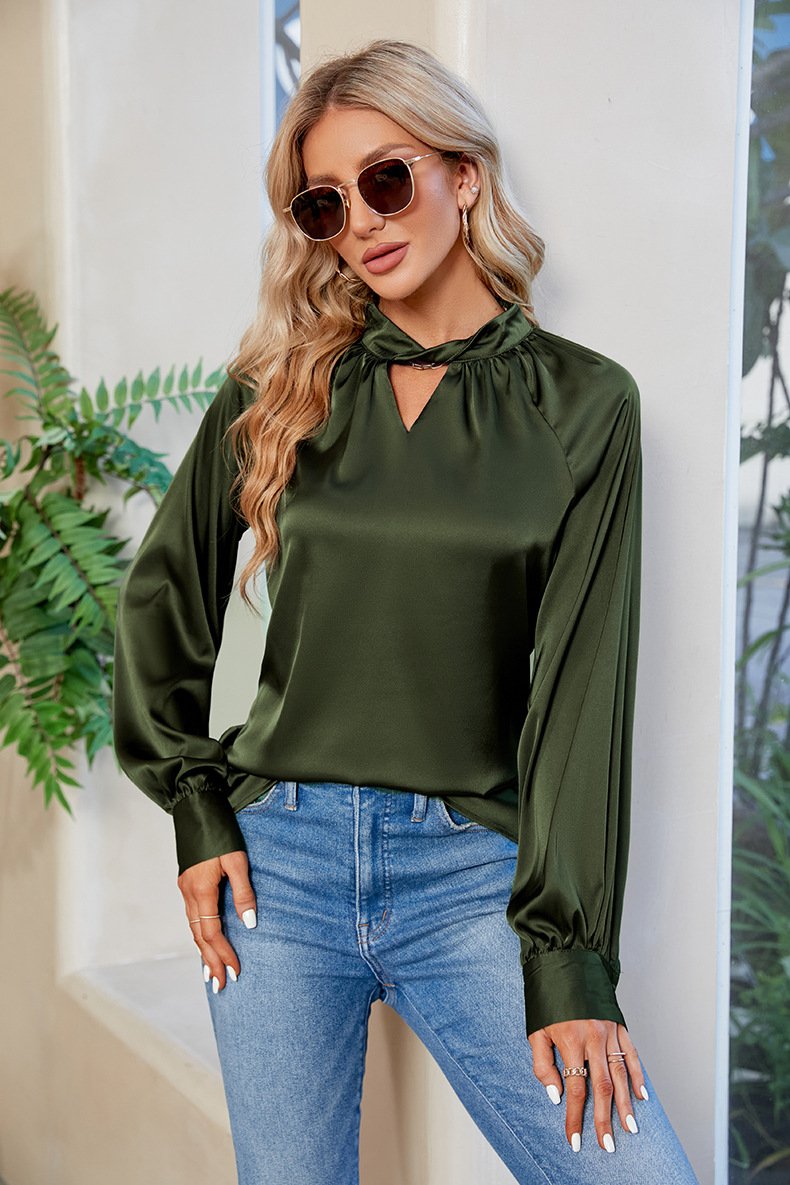 Fashion Crew Neck Long Sleeve Plain Regular Blouse - Army Green / S is backordered and will ship as soon as it is back in stock.