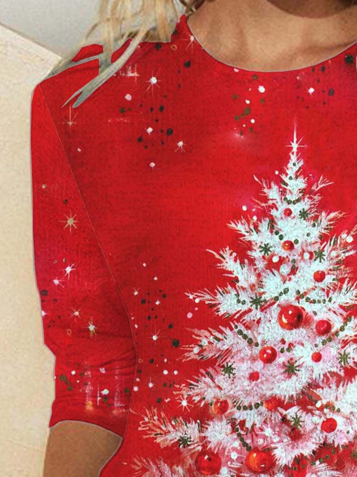 Fashion Crew Neck Long Sleeve Printed Regular Blouse - Red / S is backordered and will ship as soon as it is back in stock.