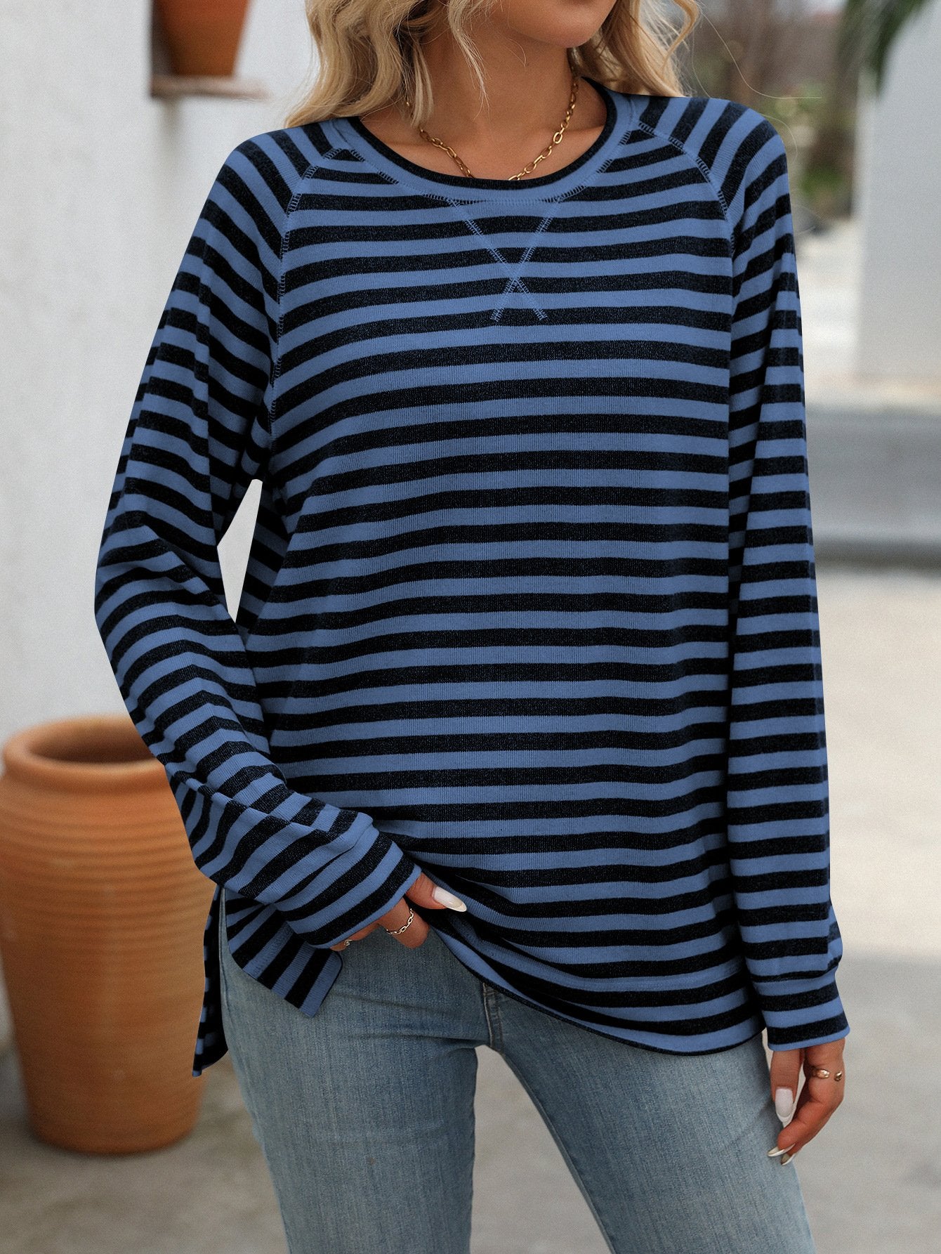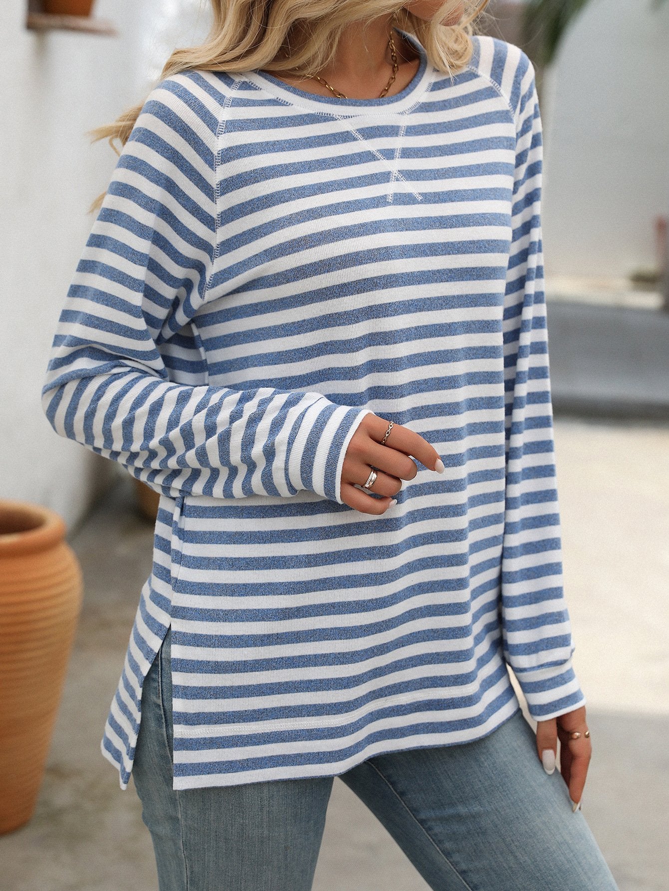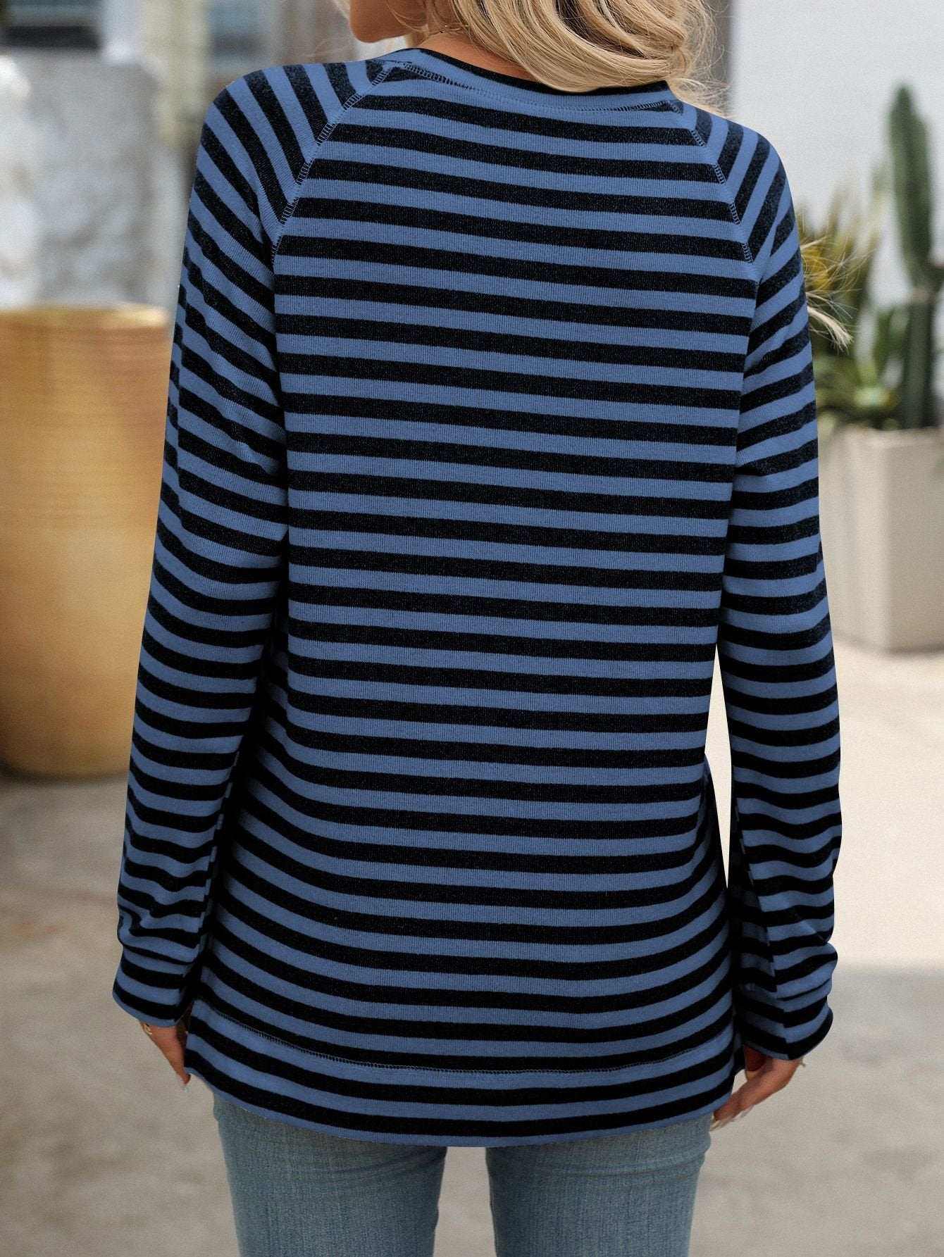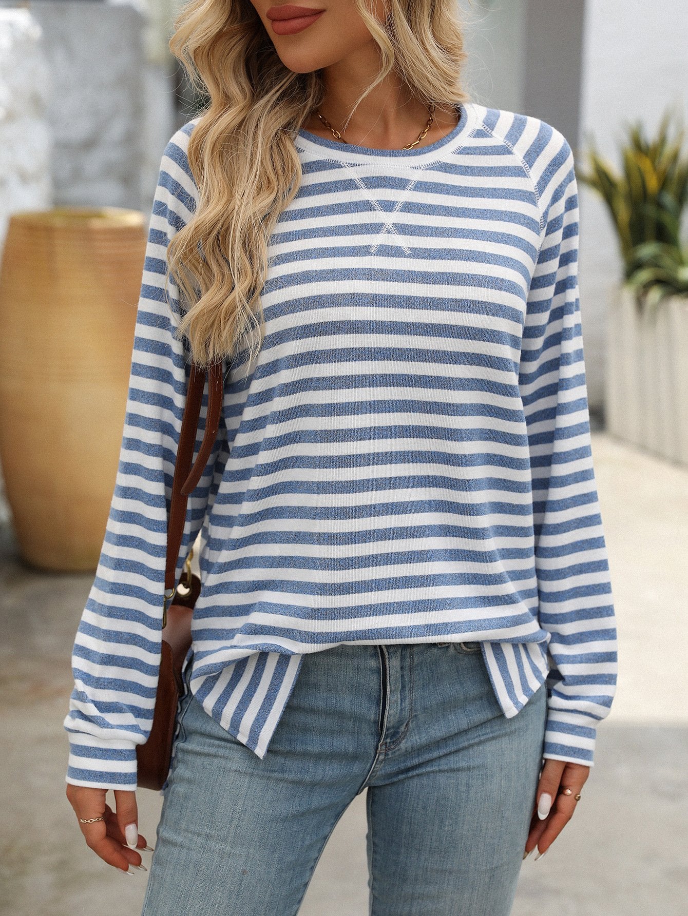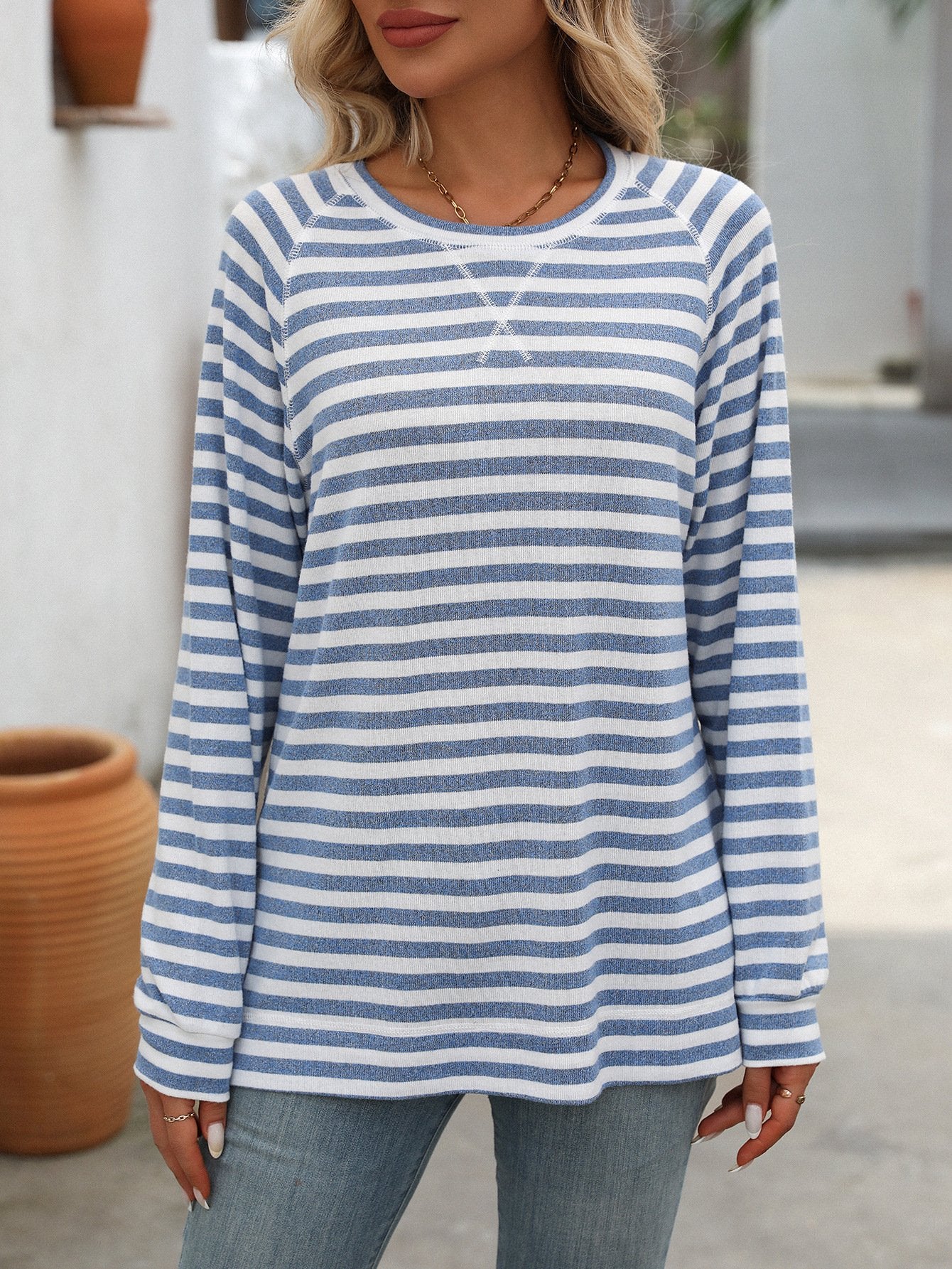 Fashion Crew Neck Long Sleeve Striped Loose Regular Blouse