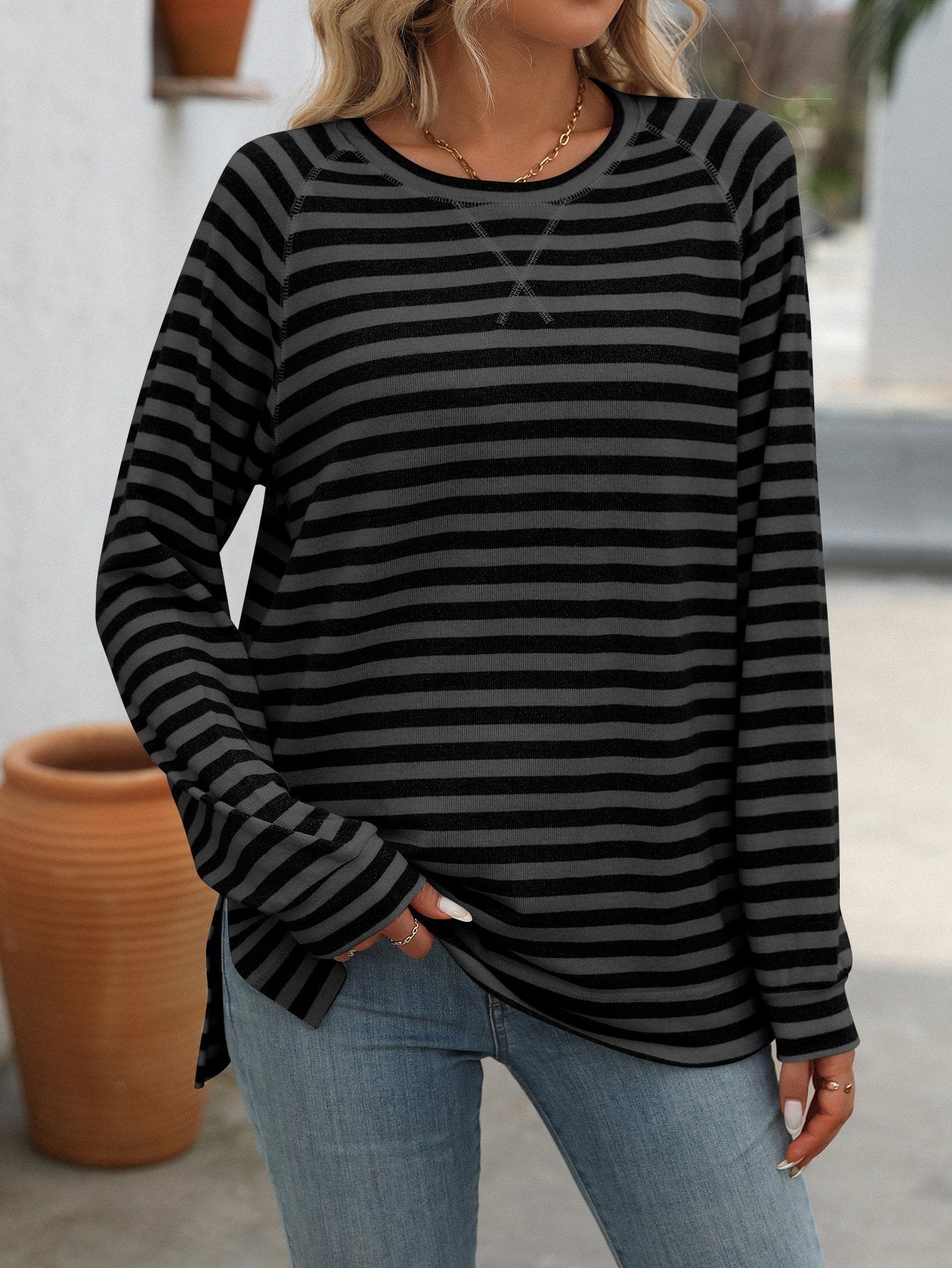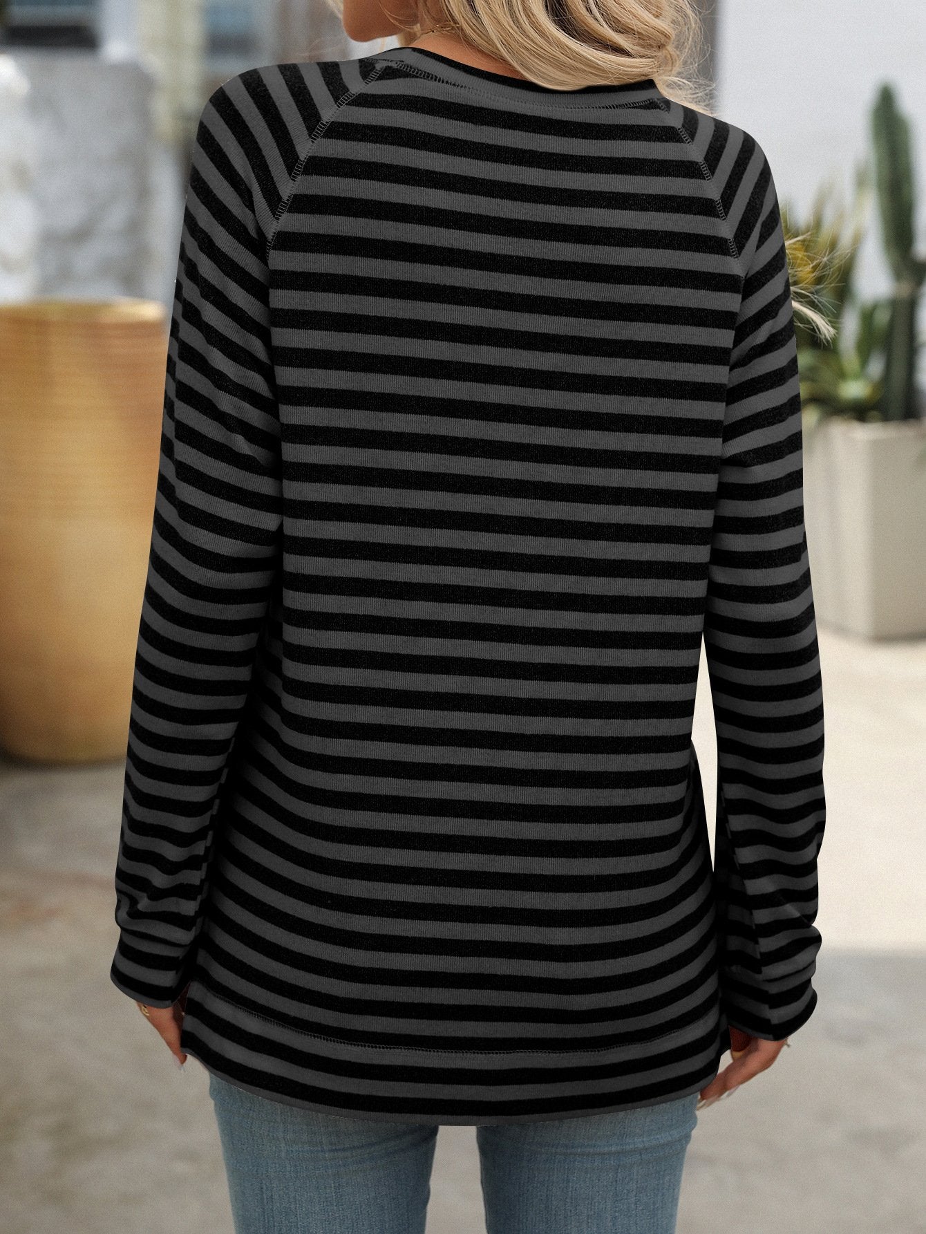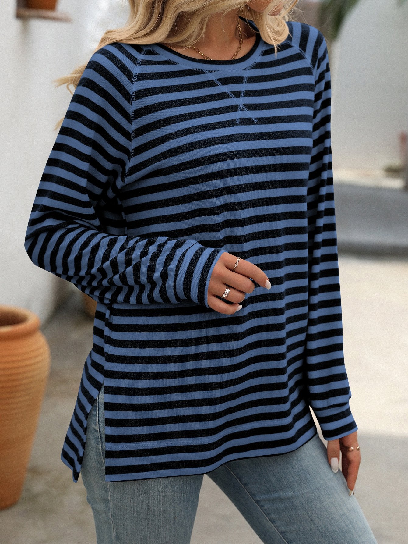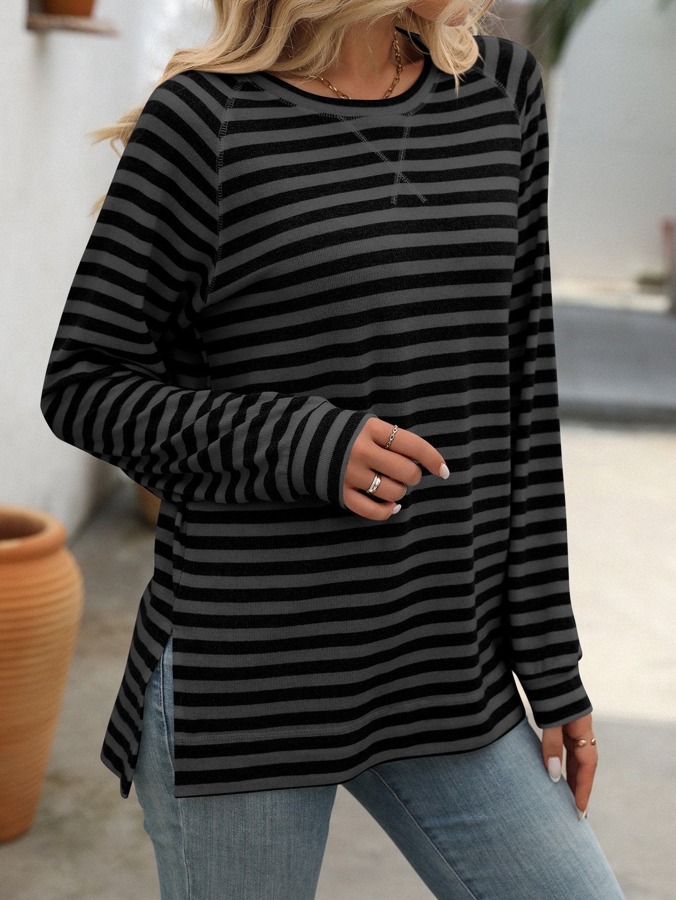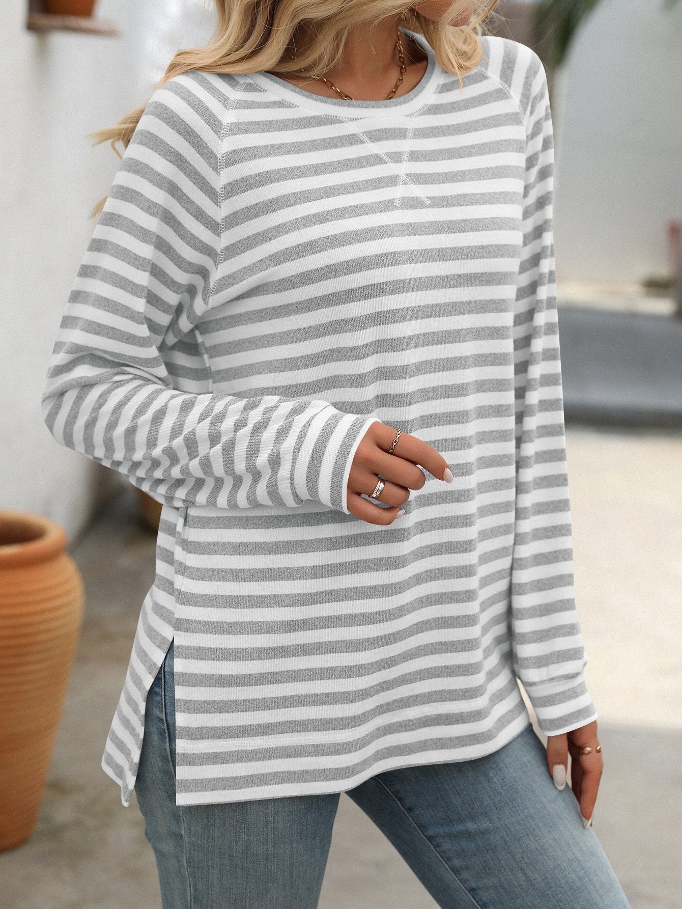 Fashion Crew Neck Long Sleeve Striped Loose Regular Blouse