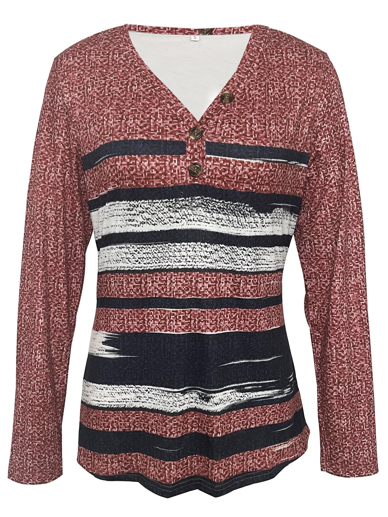 Fashion Crew Neck Long Sleeve Striped Loose Regular Blouse - Multicolor / S is backordered and will ship as soon as it is back in stock.