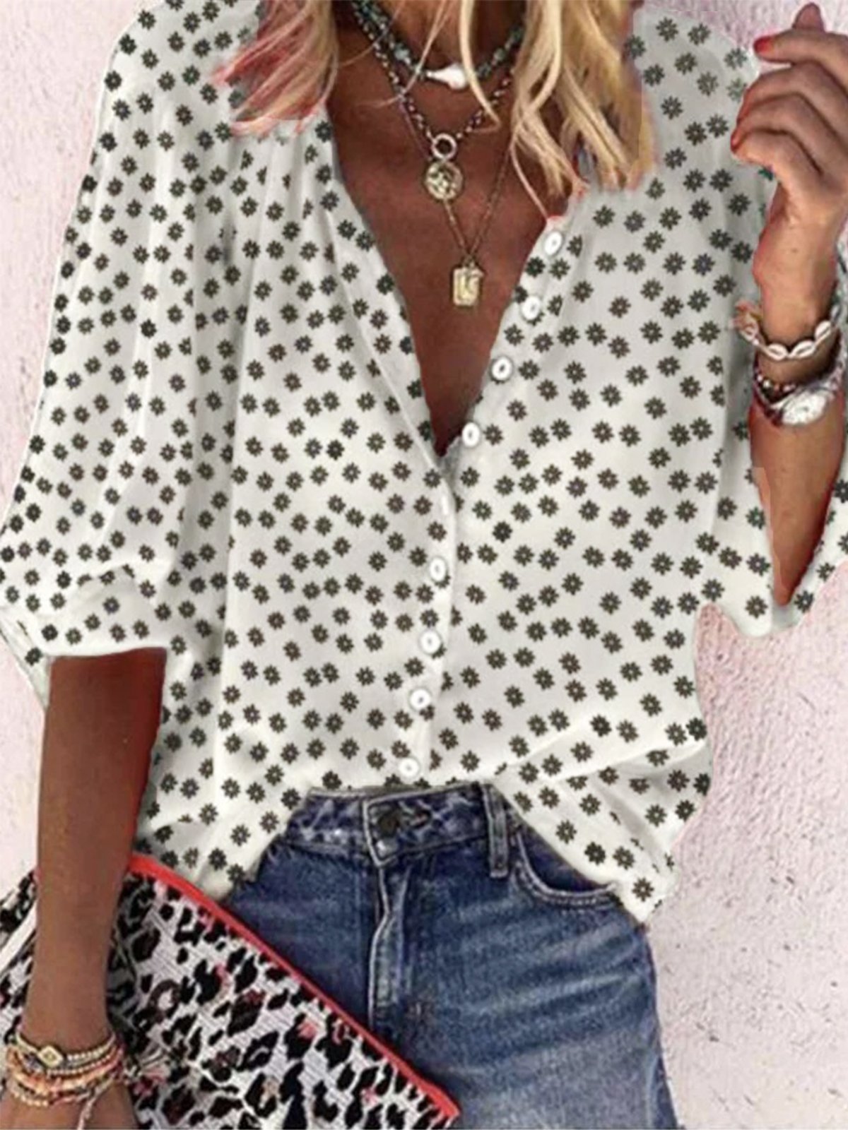 Fashion Half Sleeve Stand Collar Floral Loose Regular Shirt - Black / S is backordered and will ship as soon as it is back in stock.