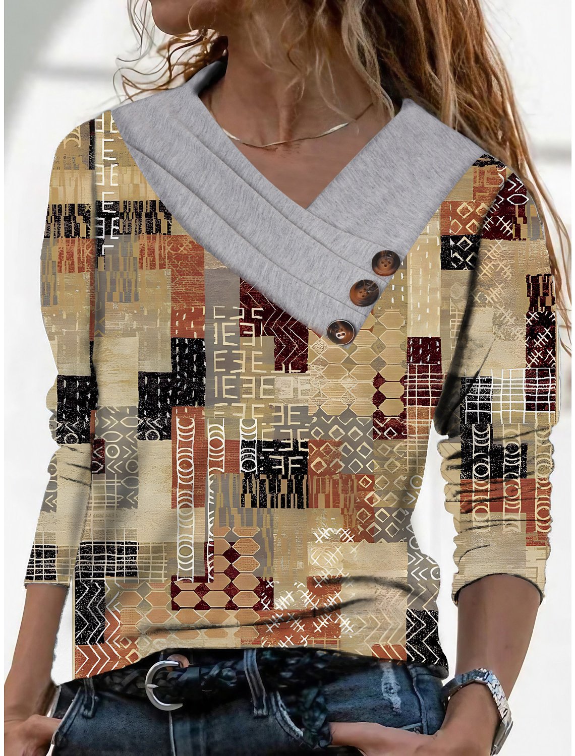 Fashion Long Sleeve Ethnic Floral Loose Regular Blouse