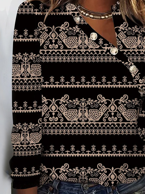 Fashion Long Sleeve Ethnic Regular Blouse - Black / S is backordered and will ship as soon as it is back in stock.