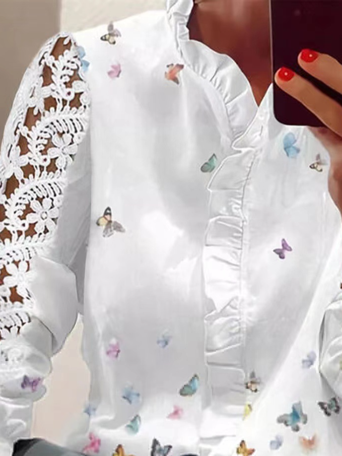 Fashion Long Sleeve Floral Regular Blouse - White / S is backordered and will ship as soon as it is back in stock.