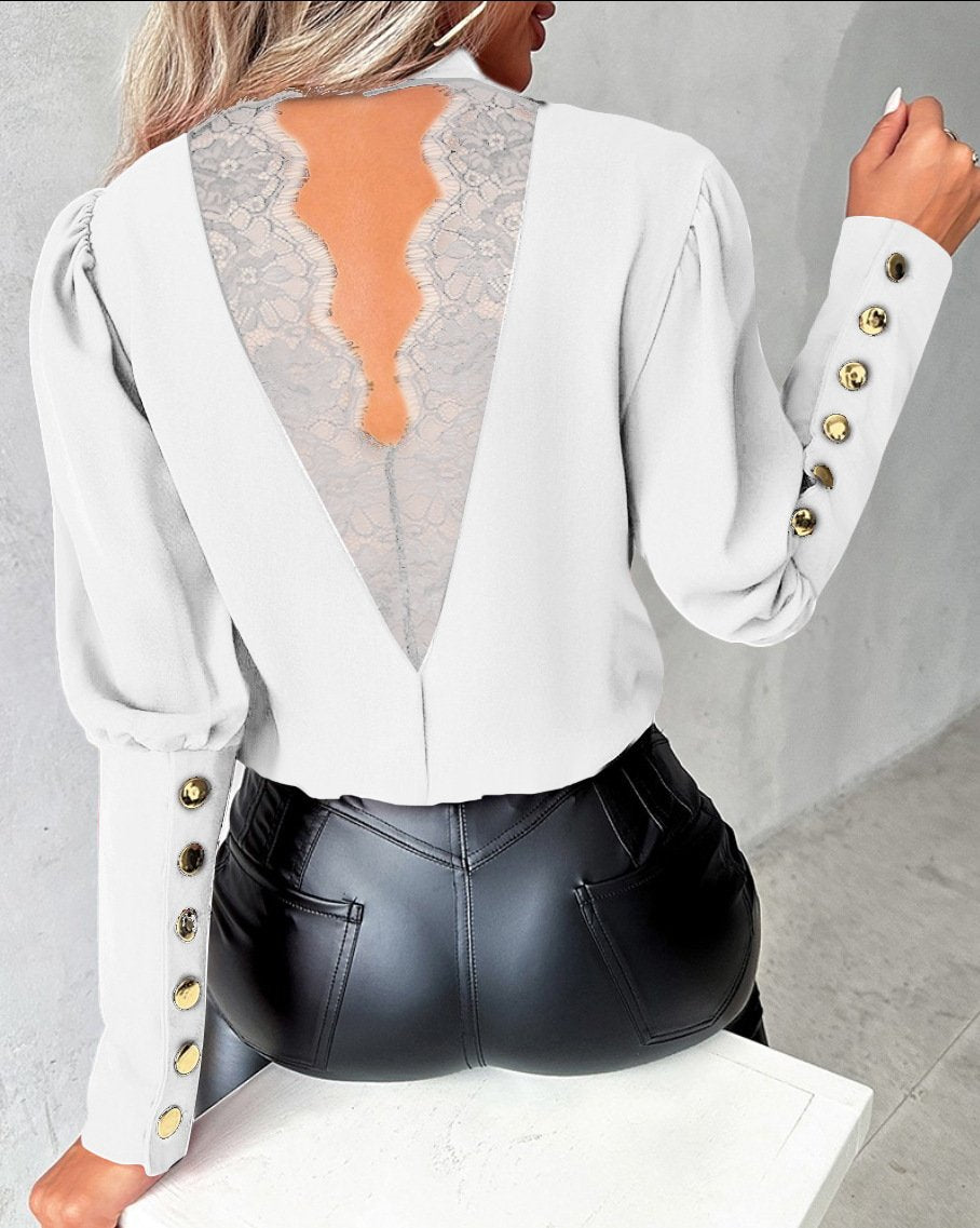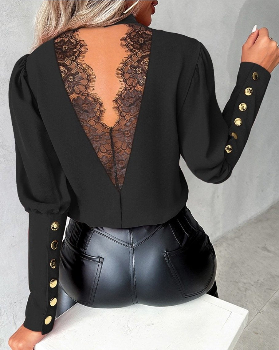 Fashion Long Sleeve Mock Neck Plain Loose Regular Blouse - Black / S is backordered and will ship as soon as it is back in stock.