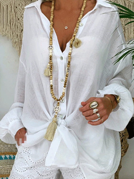 Fashion Long Sleeve Shirt Collar Plain Loose Regular Shirt