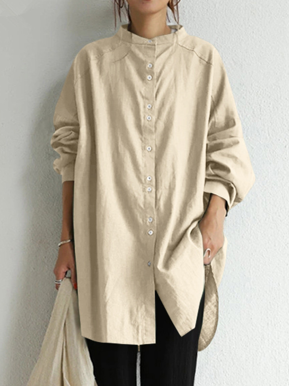 Fashion Long Sleeve Shirt Collar Plain Loose Regular Shirt - Khaki / M is backordered and will ship as soon as it is back in stock.