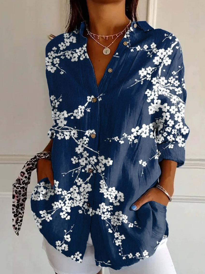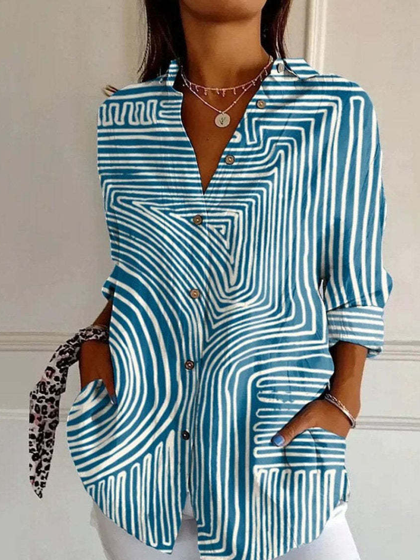 Fashion Long Sleeve Shirt Collar Striped Floral Loose Regular Shirt - Green / XS is backordered and will ship as soon as it is back in stock.