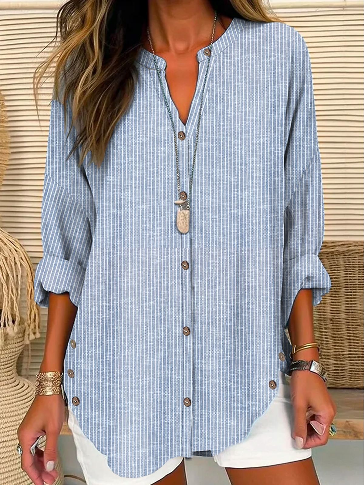Fashion Long Sleeve Shirt Collar Striped Loose Mid-Long Shirt - Light Blue / S is backordered and will ship as soon as it is back in stock.