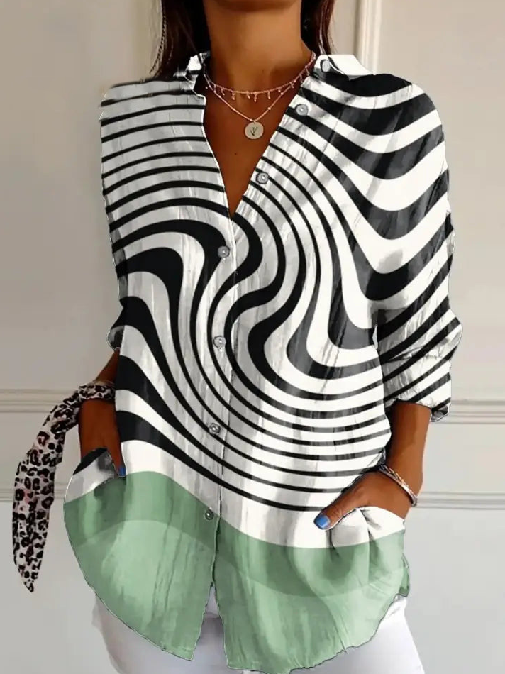 Fashion Long Sleeve Shirt Collar Striped Loose Regular Shirt - Multicolor / XS is backordered and will ship as soon as it is back in stock.