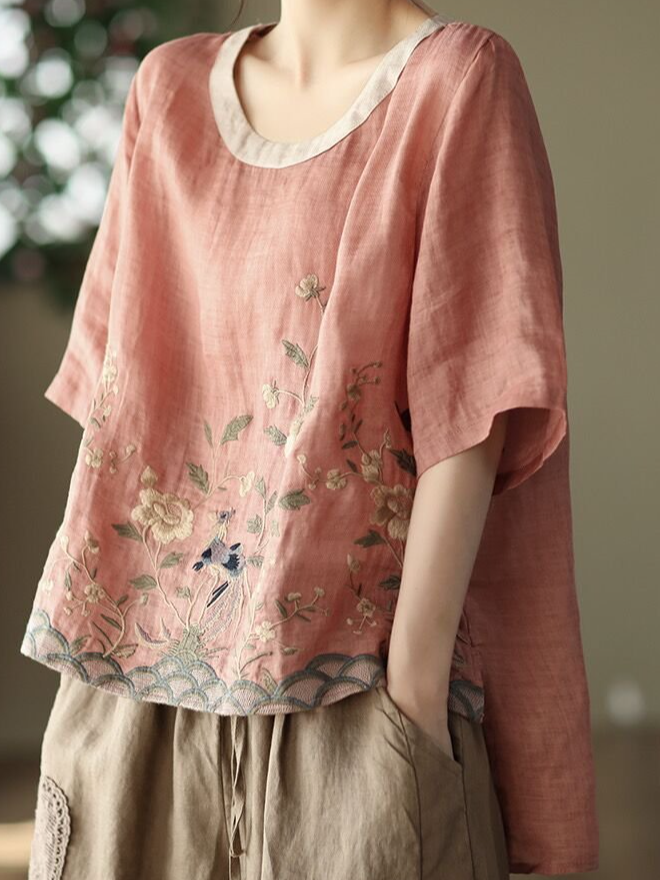 Fashion Short Sleeve Crew Neck Floral Loose Regular Blouse - Black / M is backordered and will ship as soon as it is back in stock.