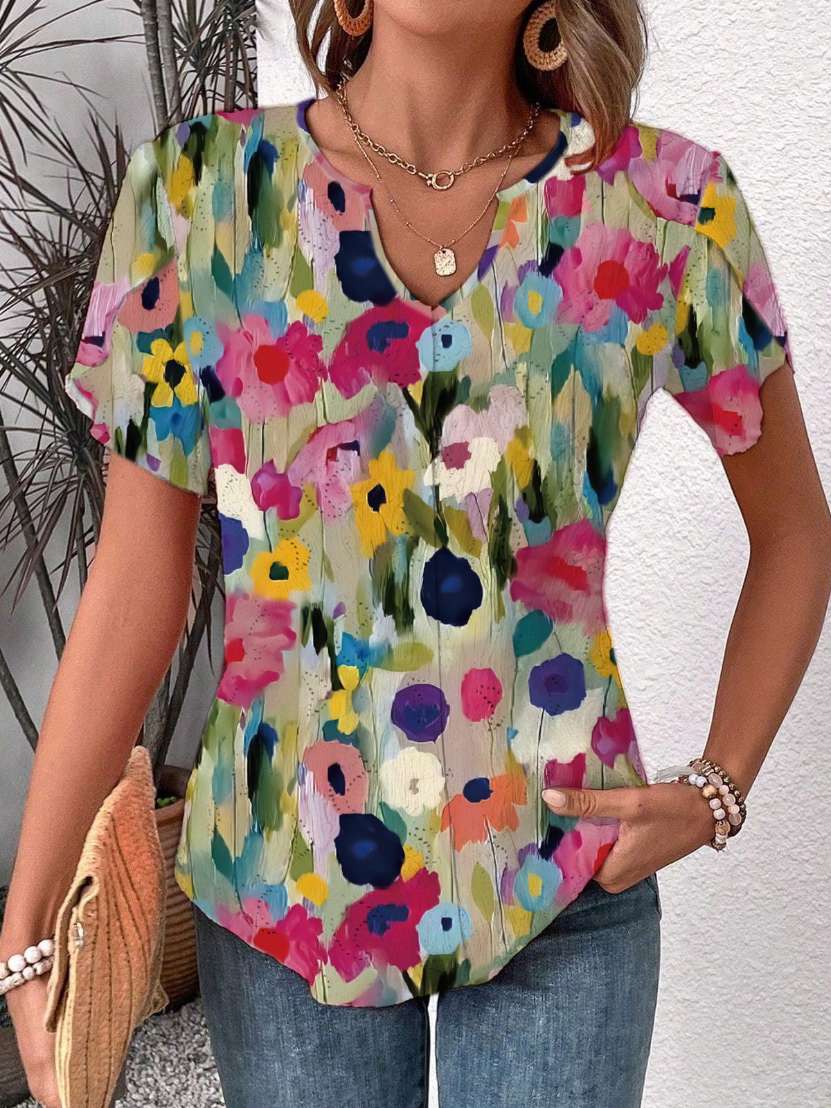 Fashion Short Sleeve Crew Neck Floral Loose Regular Blouse - Multicolor / S is backordered and will ship as soon as it is back in stock.