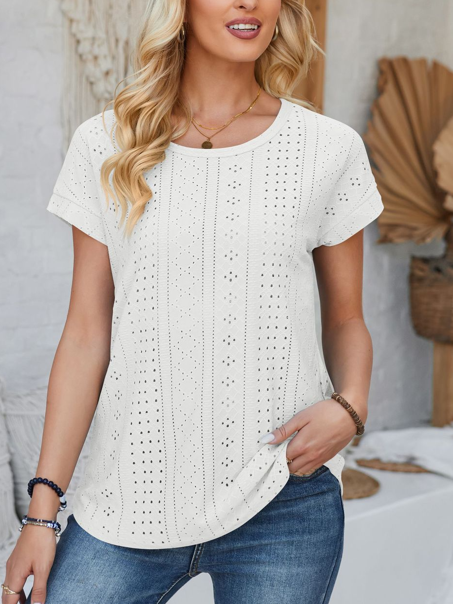 Fashion Short Sleeve Crew Neck Plain Loose Regular Blouse