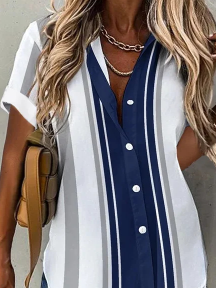 Fashion Short Sleeve Shirt Collar Floral Loose Regular Shirt
