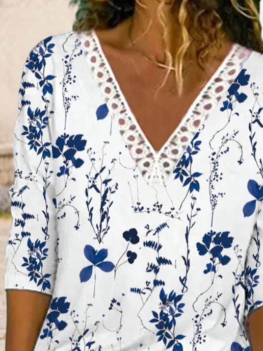 Fashion V Neck Long Sleeve Floral Pattern Regular Blouses
