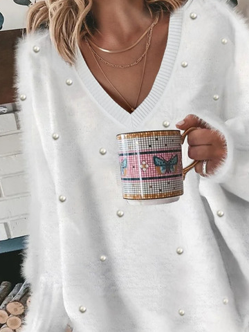 Fashion V Neck Long Sleeve Plain Loose Regular Sweater