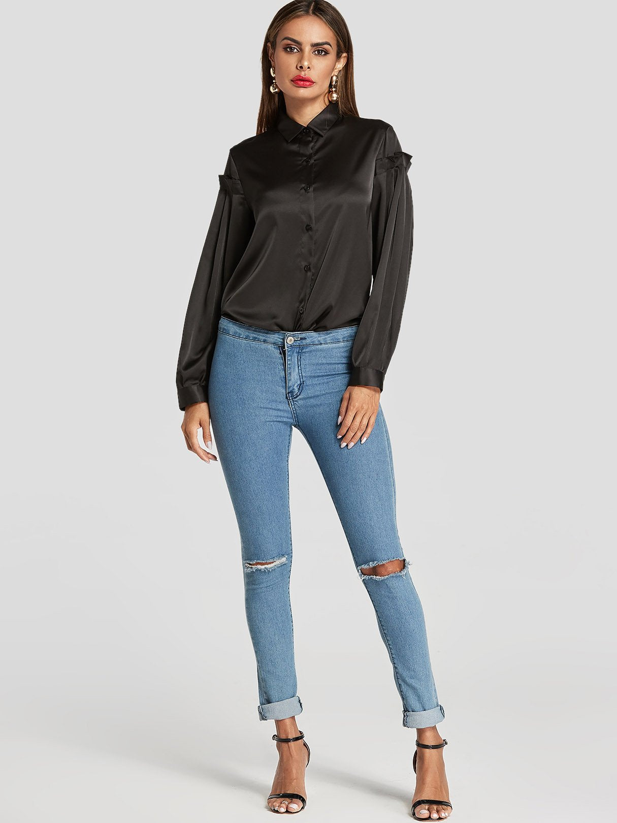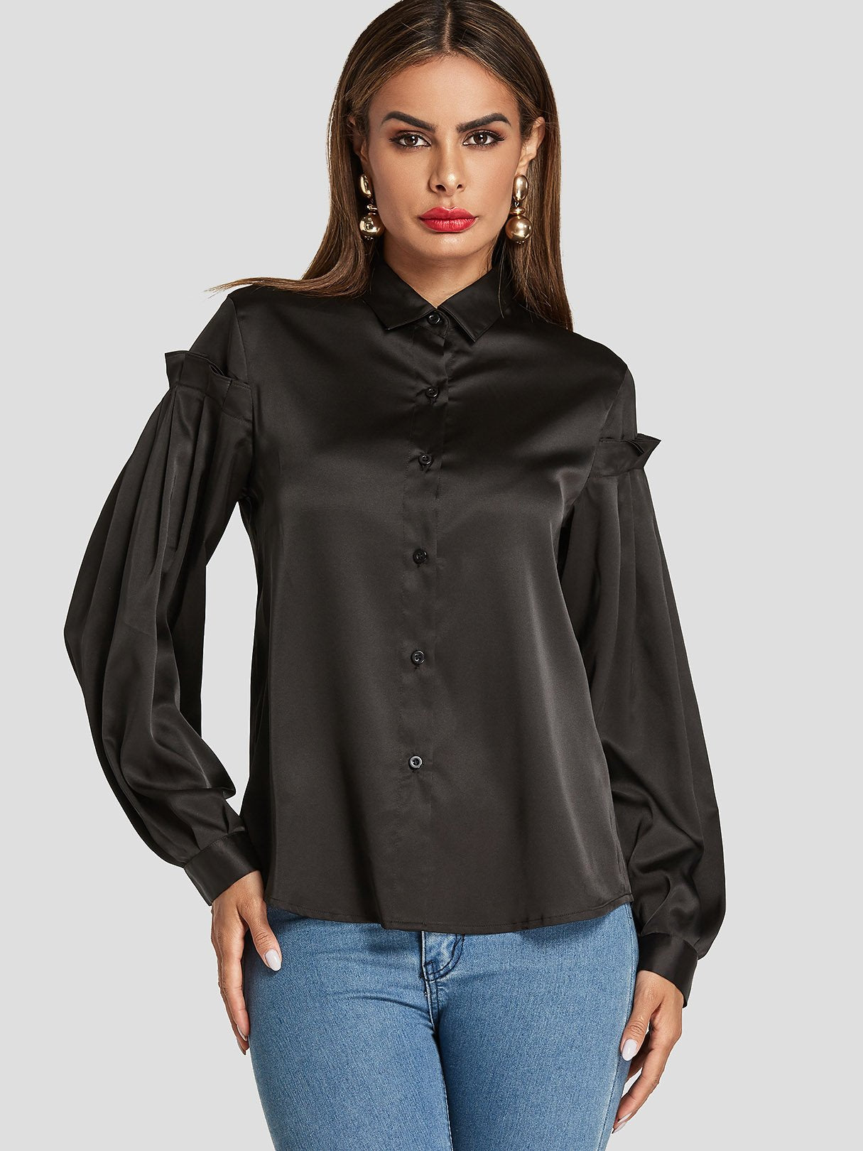 Long Sleeve Black Blouses - Black / S is backordered and will ship as soon as it is back in stock.