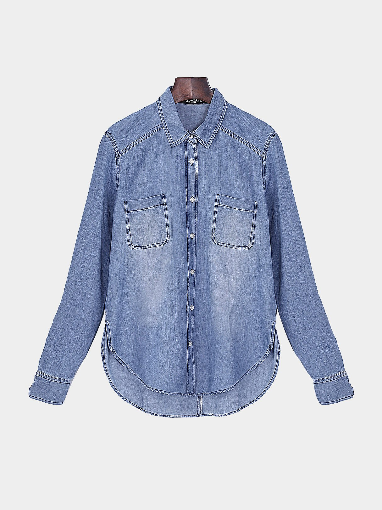 Material:Polyester,DenimSeason:Spring,Summer,AutumnSleeves:Long SleevesButton Design:Single Breasted DesignHem Design:Curved Hem