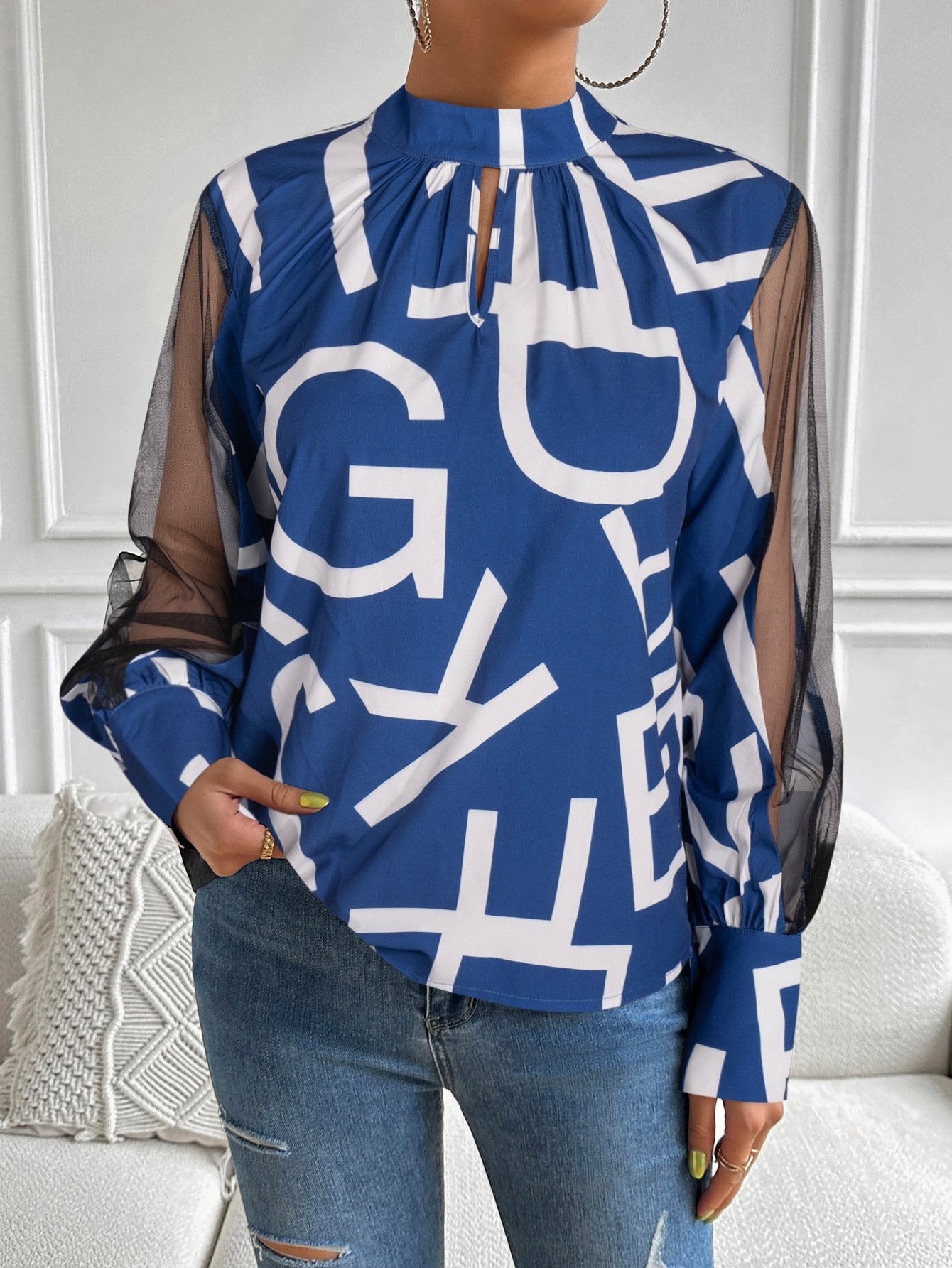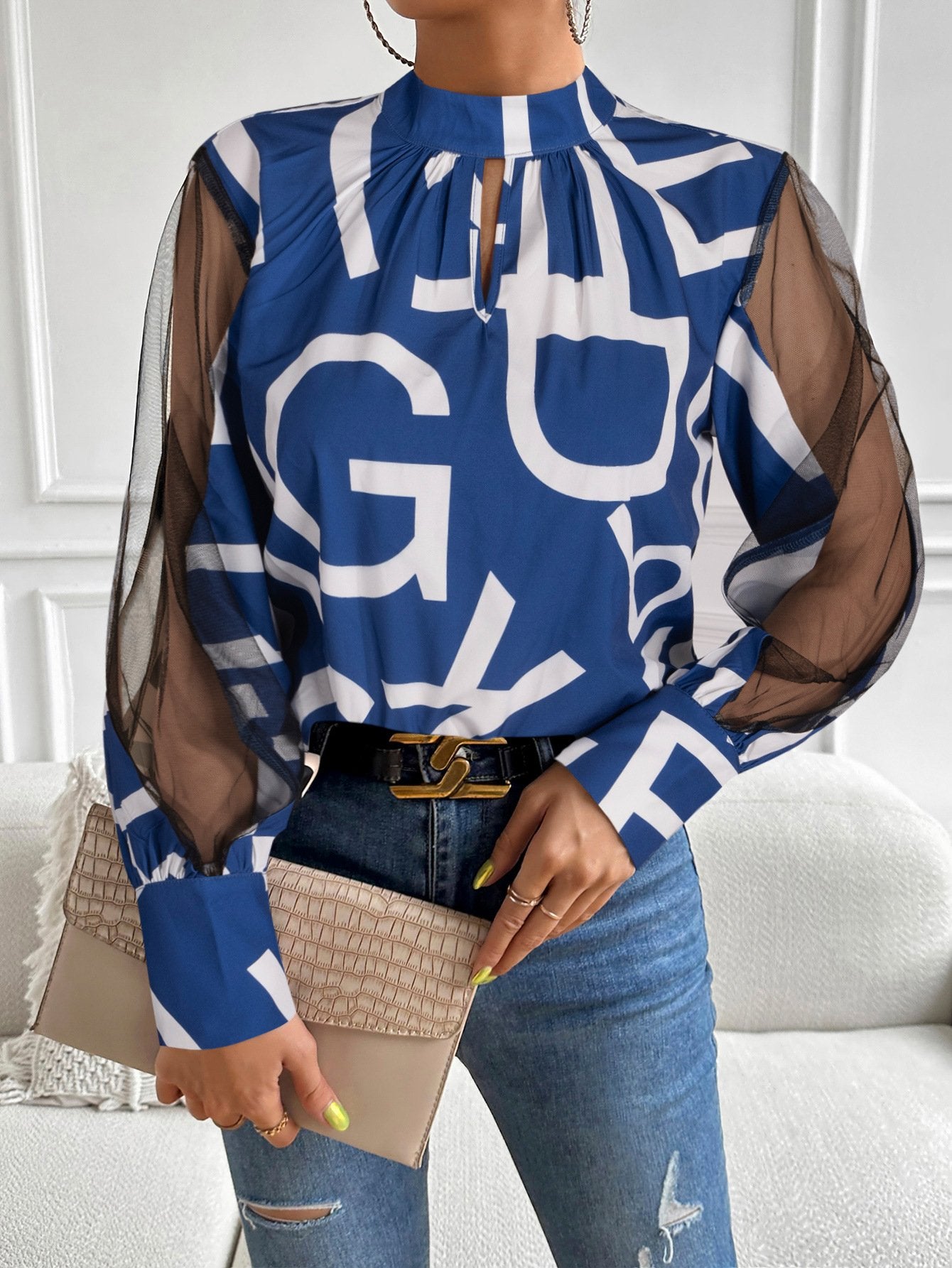 Long Sleeve Stand Collar Abstract Fashion Regular Blouse - Black / S is backordered and will ship as soon as it is back in stock.