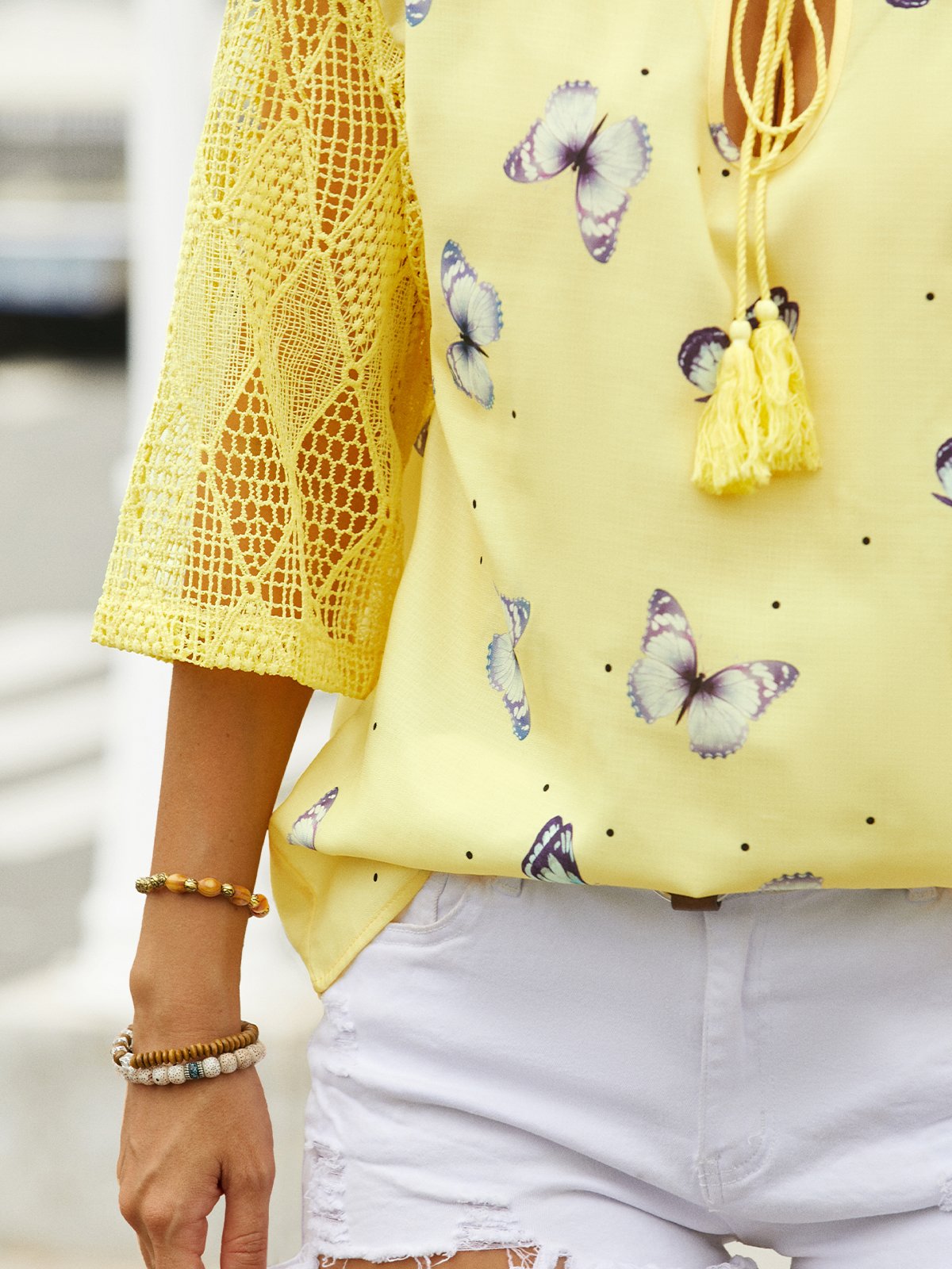 Loose 3/4 Sleeve Crew Neck Animal Picture Fashion Regular Blouse - Yellow / S is backordered and will ship as soon as it is back in stock.