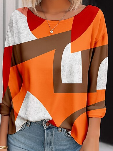 Loose Crew Neck Long Sleeve Plaid Fashion Regular Blouses - Orange / S is backordered and will ship as soon as it is back in stock.