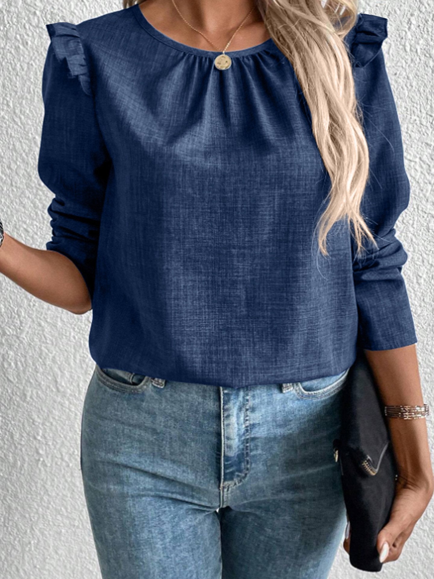Loose Crew Neck Long Sleeve Plain Fashion Regular Blouses - Black / S is backordered and will ship as soon as it is back in stock.