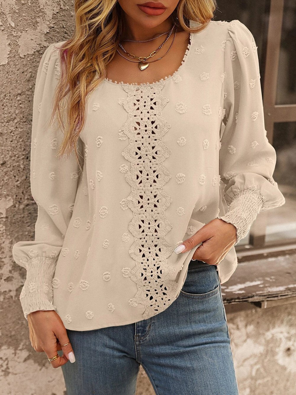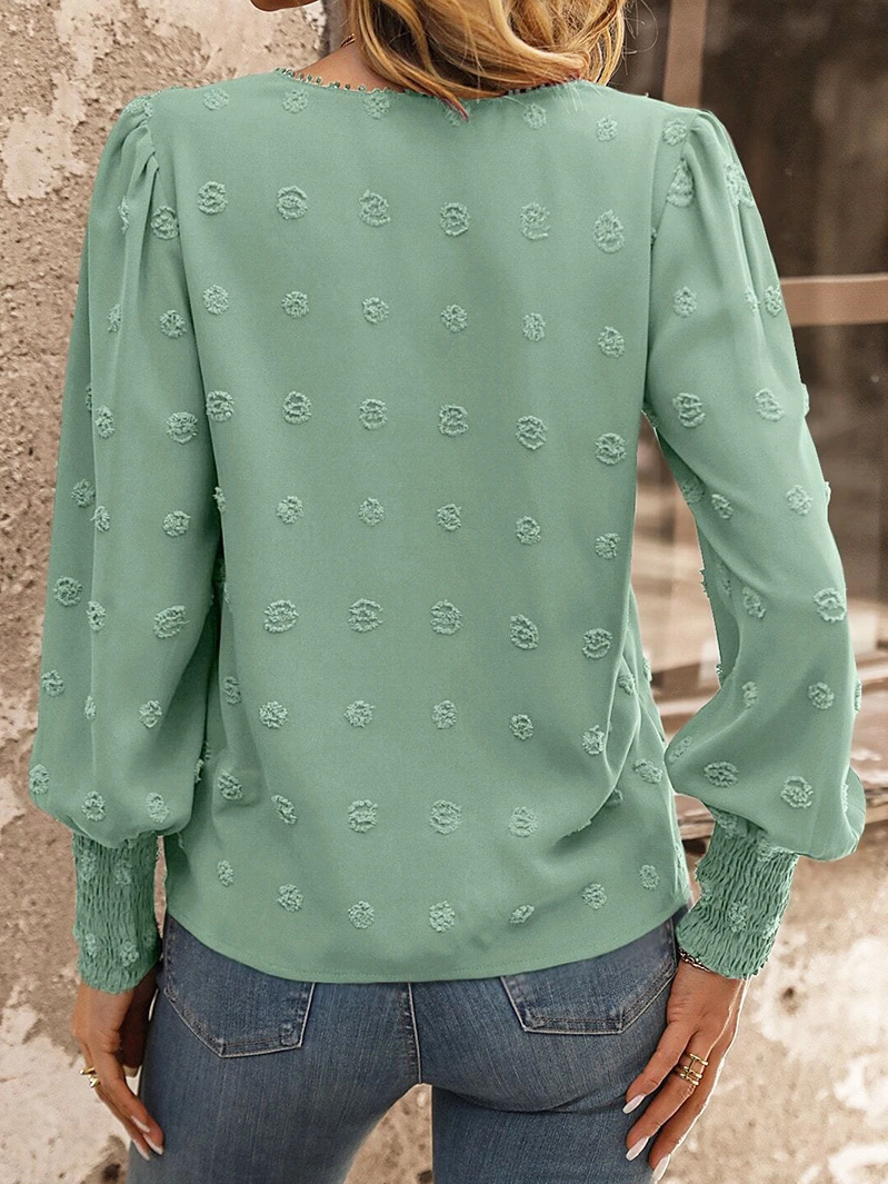 Loose Crew Neck Long Sleeve Plain Fashion Regular Blouses