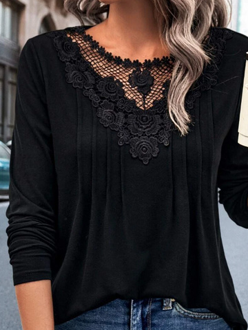 Loose Crew Neck Long Sleeve Plain Fashion Regular Blouses