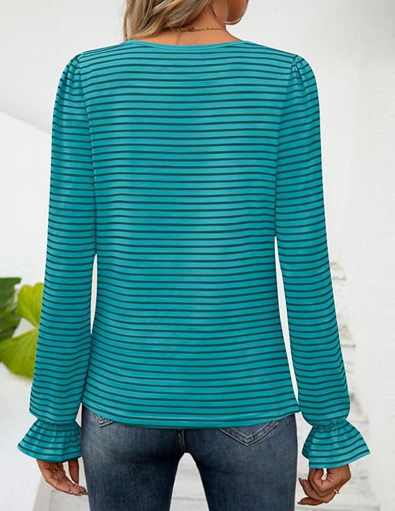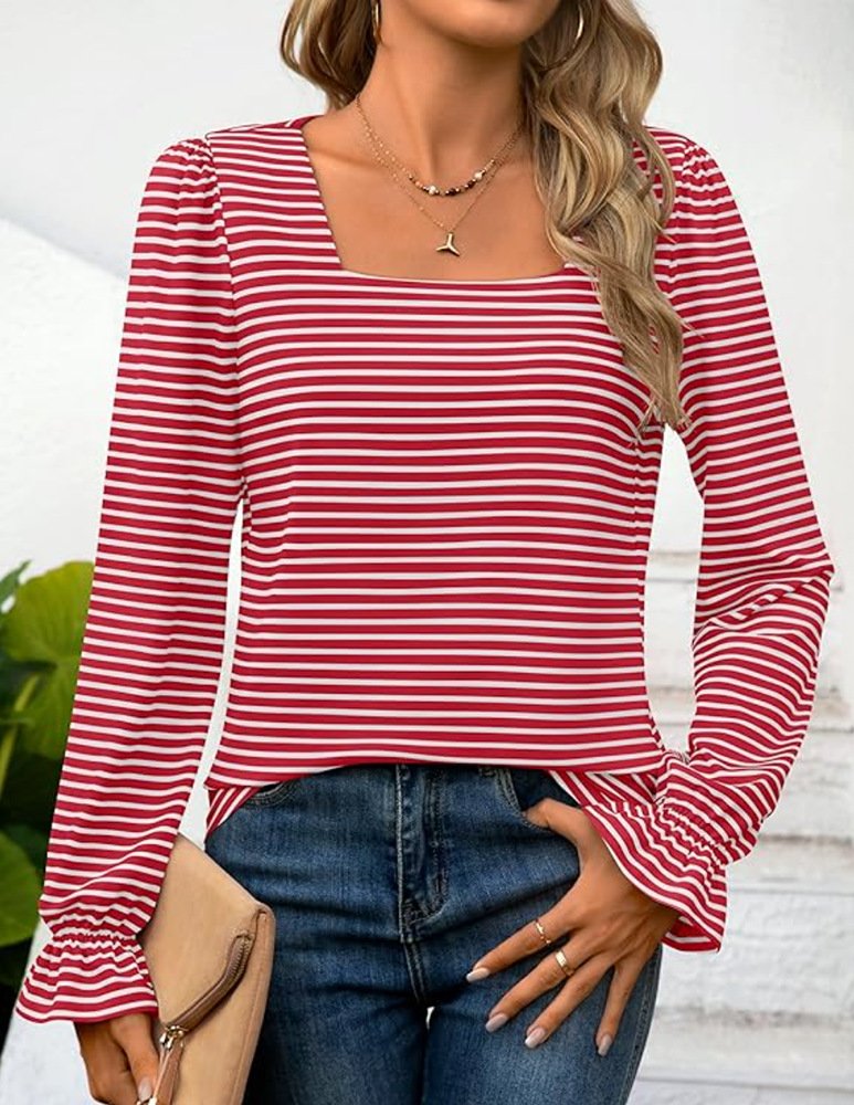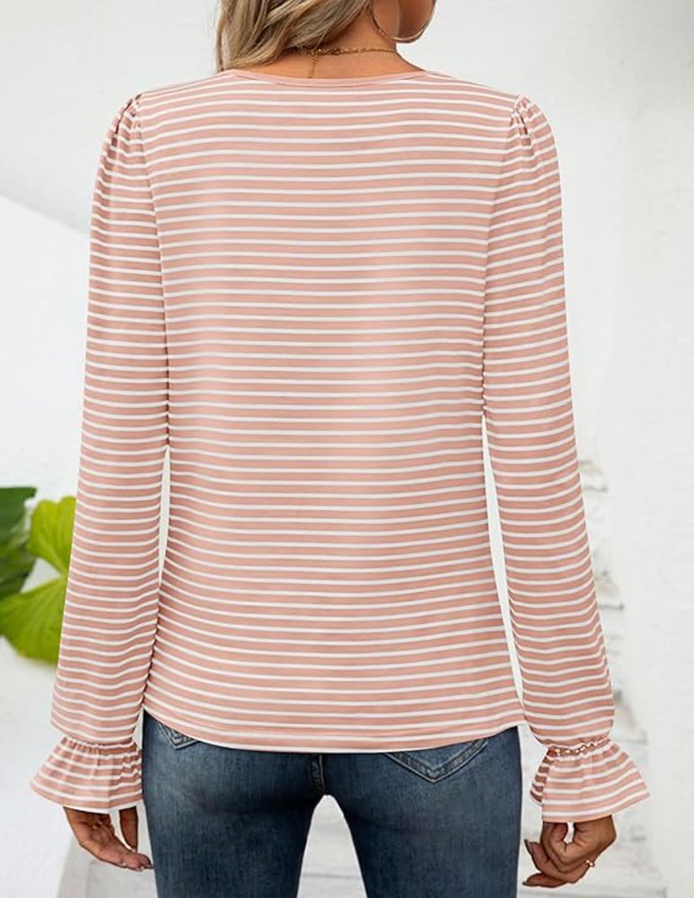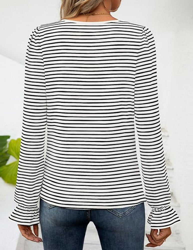 Loose Crew Neck Long Sleeve Striped Fashion Regular Blouse - White / S is backordered and will ship as soon as it is back in stock.