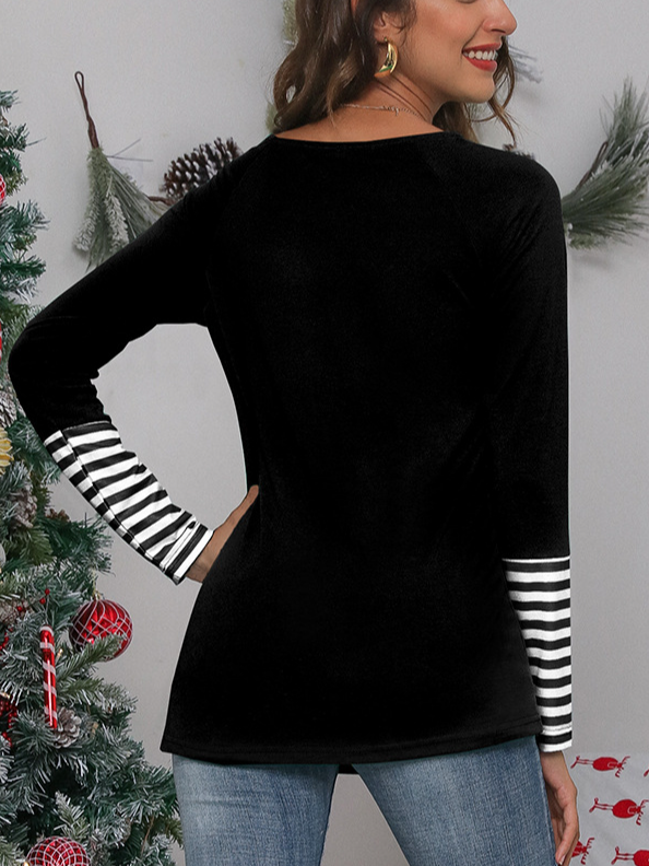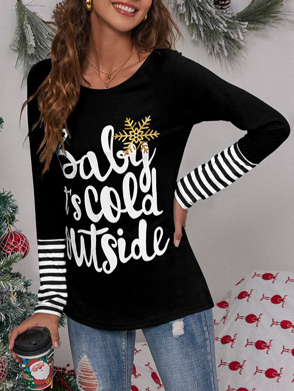 Loose Crew Neck Long Sleeve Text Letters Fashion Regular Blouse - Black / S is backordered and will ship as soon as it is back in stock.