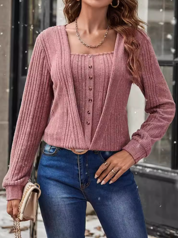 Loose Long Sleeve Plain Fashion Regular Blouse - Pink / S is backordered and will ship as soon as it is back in stock.