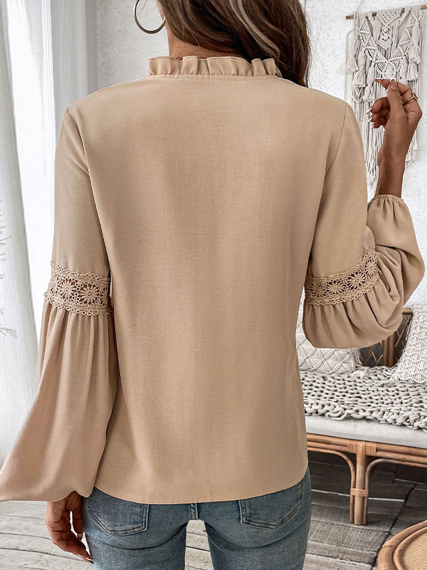 Loose Long Sleeve Plain Fashion Regular Blouse - Khaki / S is backordered and will ship as soon as it is back in stock.