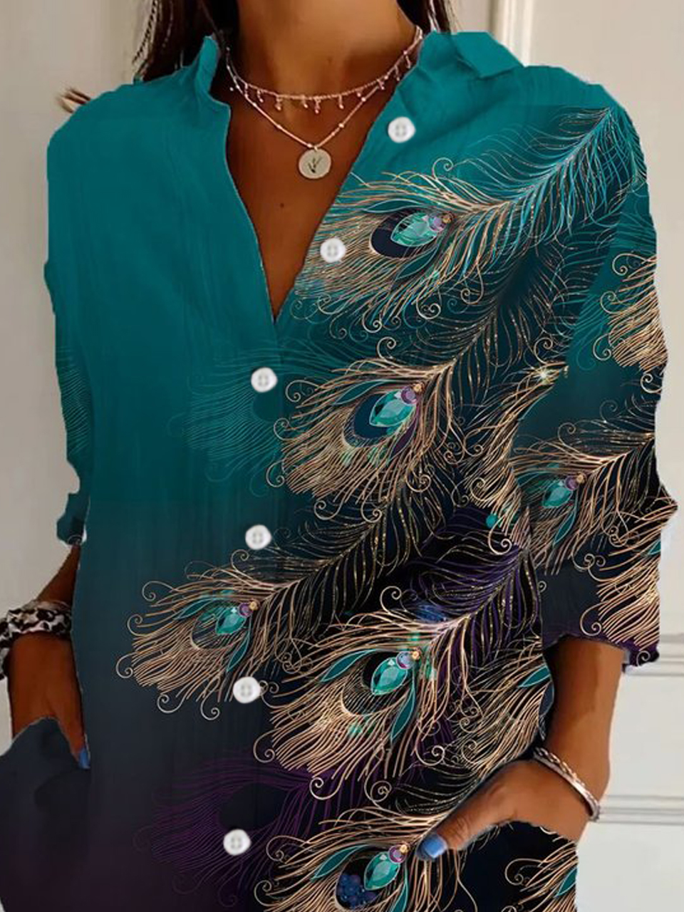 Loose Long Sleeve Shirt Collar Feather Fashion Regular Shirt - Green / XS is backordered and will ship as soon as it is back in stock.