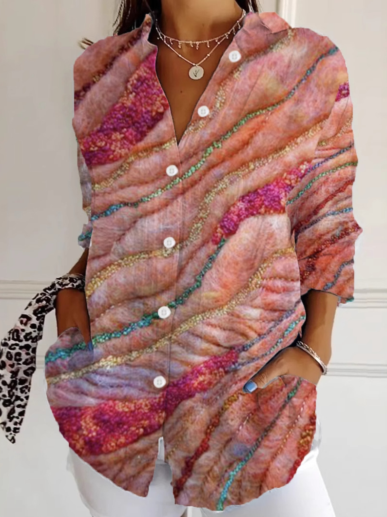 Loose Long Sleeve Shirt Collar Geometric Fashion Regular Shirt - Blue / XS is backordered and will ship as soon as it is back in stock.