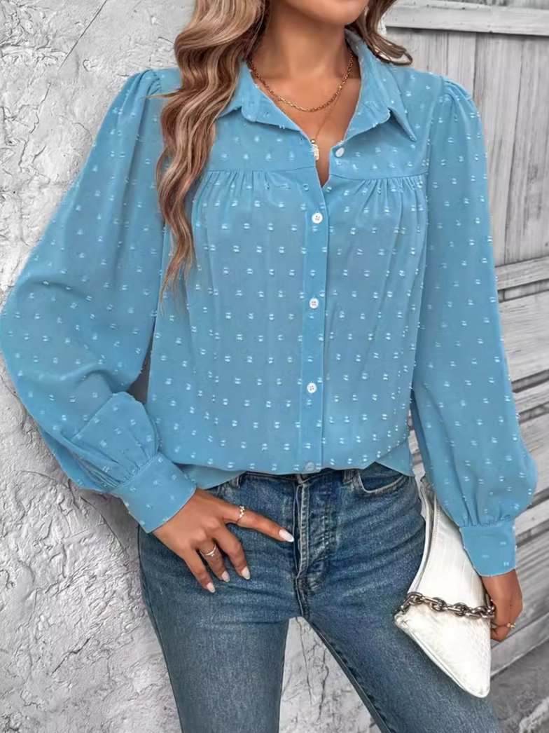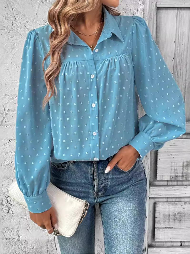 Loose Long Sleeve Shirt Collar Plain Fashion Regular Shirt - Blue / S is backordered and will ship as soon as it is back in stock.