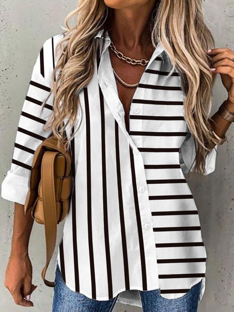 Loose Long Sleeve Shirt Collar Striped Fashion Regular Shirt - White / XS is backordered and will ship as soon as it is back in stock.
