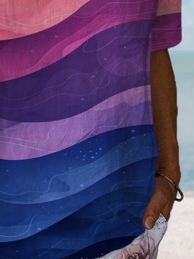 Loose Short Sleeve Crew Neck Ombre Fashion Regular Blouse - Purple / S is backordered and will ship as soon as it is back in stock.