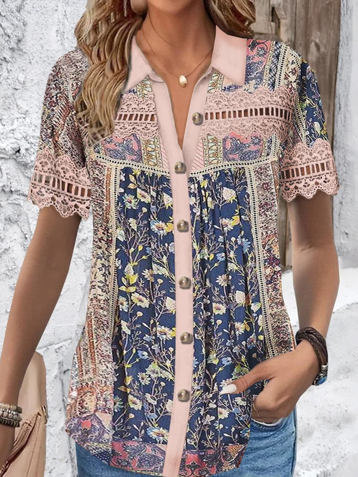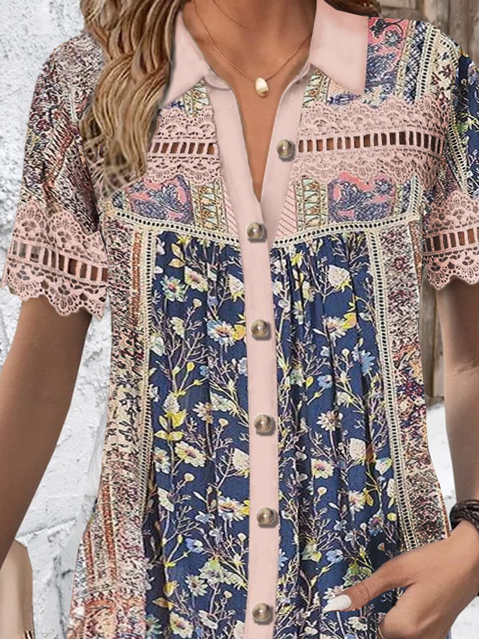 Loose Short Sleeve Shirt Collar Floral Fashion Regular Shirt - Multicolor / S is backordered and will ship as soon as it is back in stock.