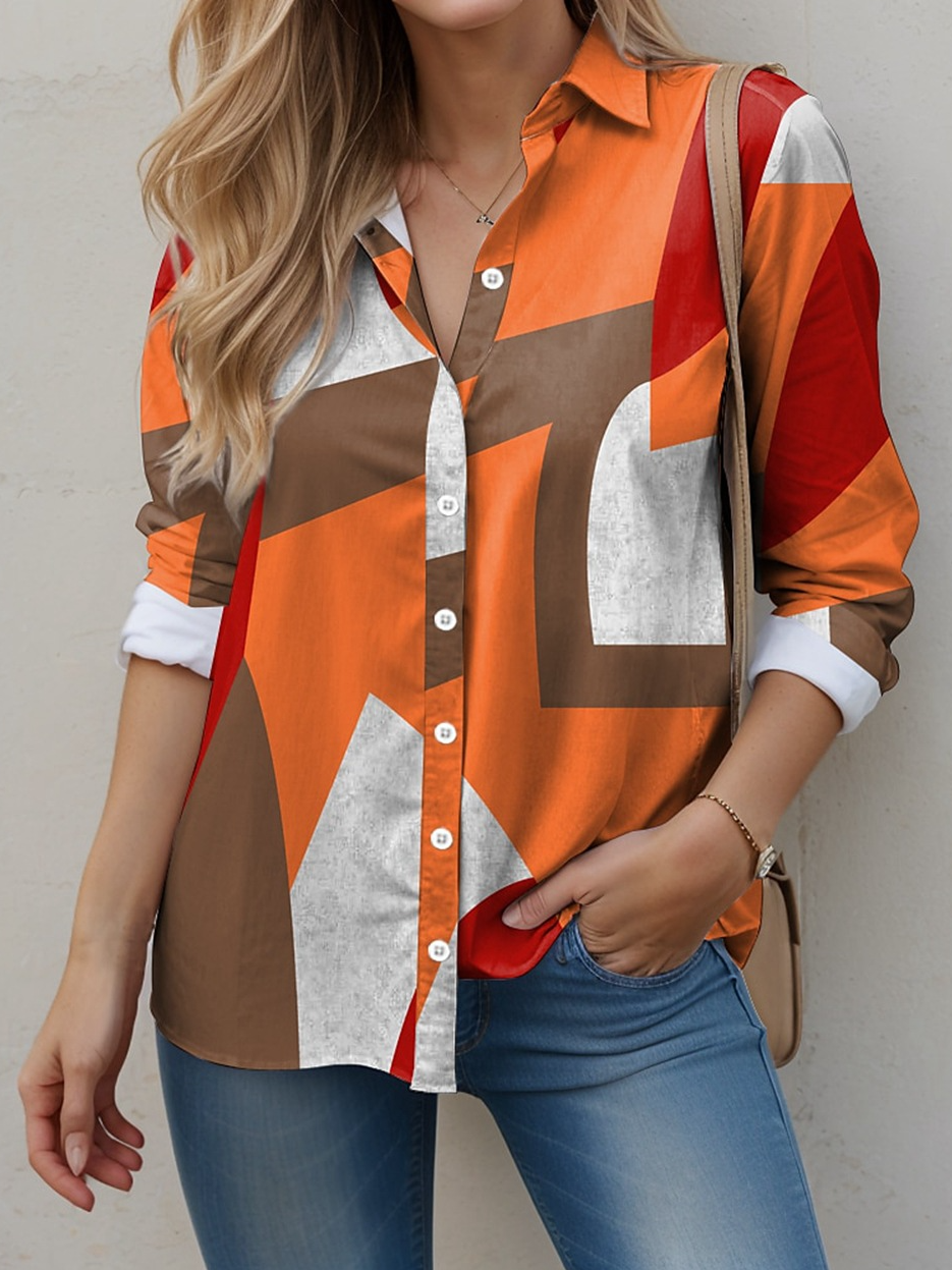 Loose Short Sleeve Shirt Collar Geometric Embroidery Fashion Regular Shirt - Red / S is backordered and will ship as soon as it is back in stock.
