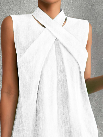 Loose Sleeveless Mock Neck Plain Fashion Mid-Long Tank Top - White / S is backordered and will ship as soon as it is back in stock.