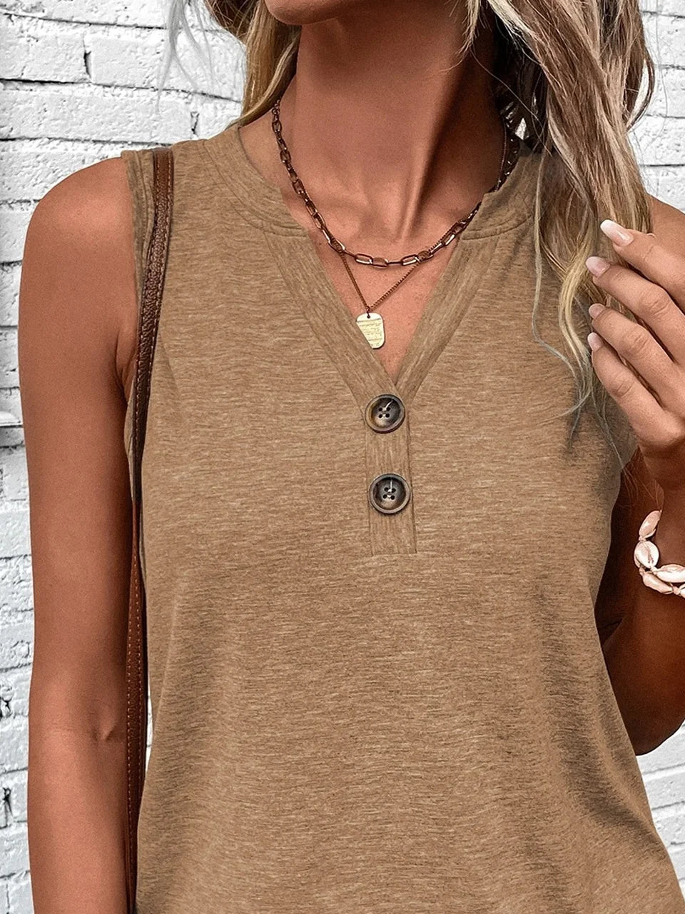 Loose V Neck Sleeveless Plain Fashion Regular T-Shirt - Khaki / S is backordered and will ship as soon as it is back in stock.