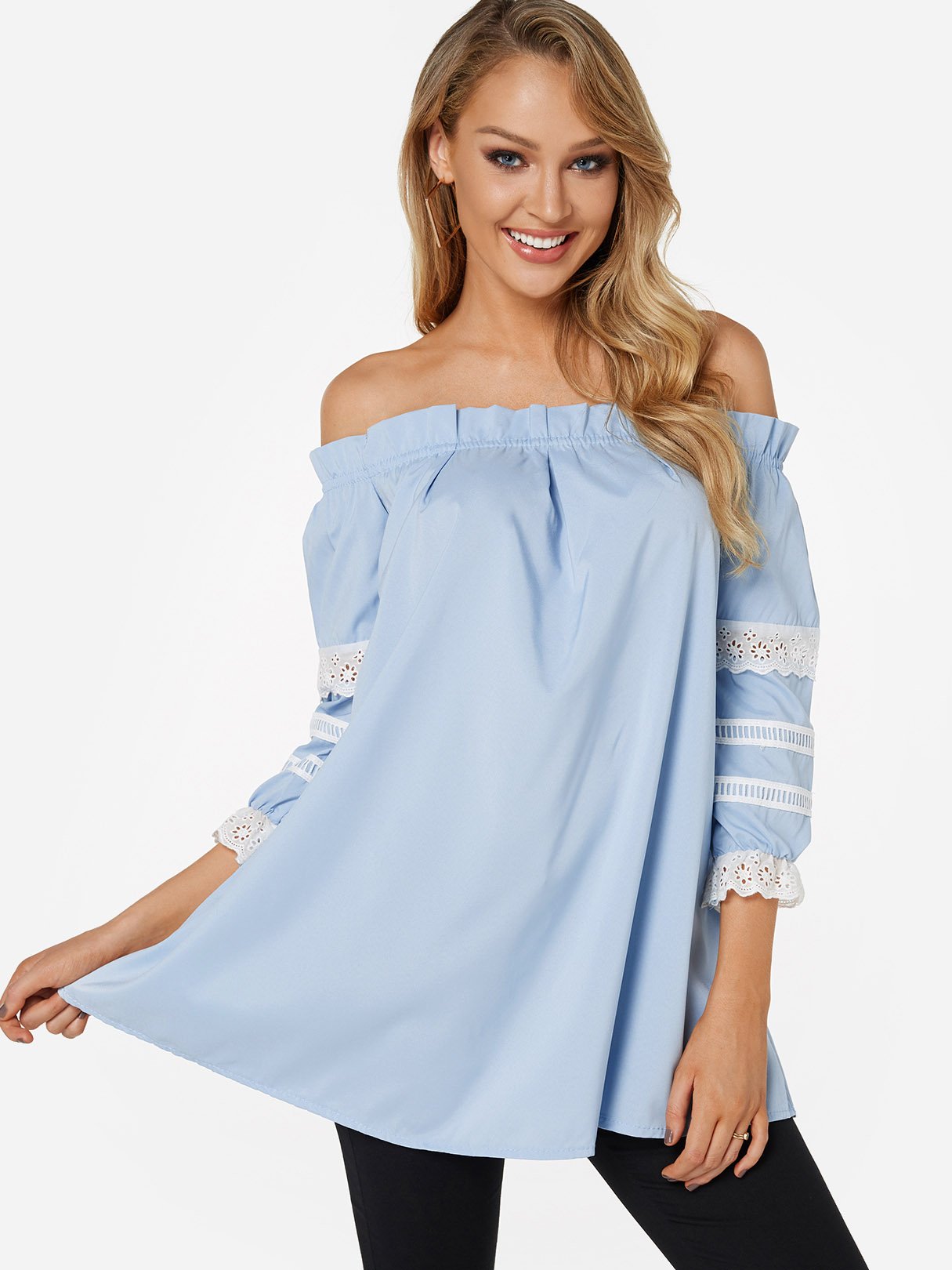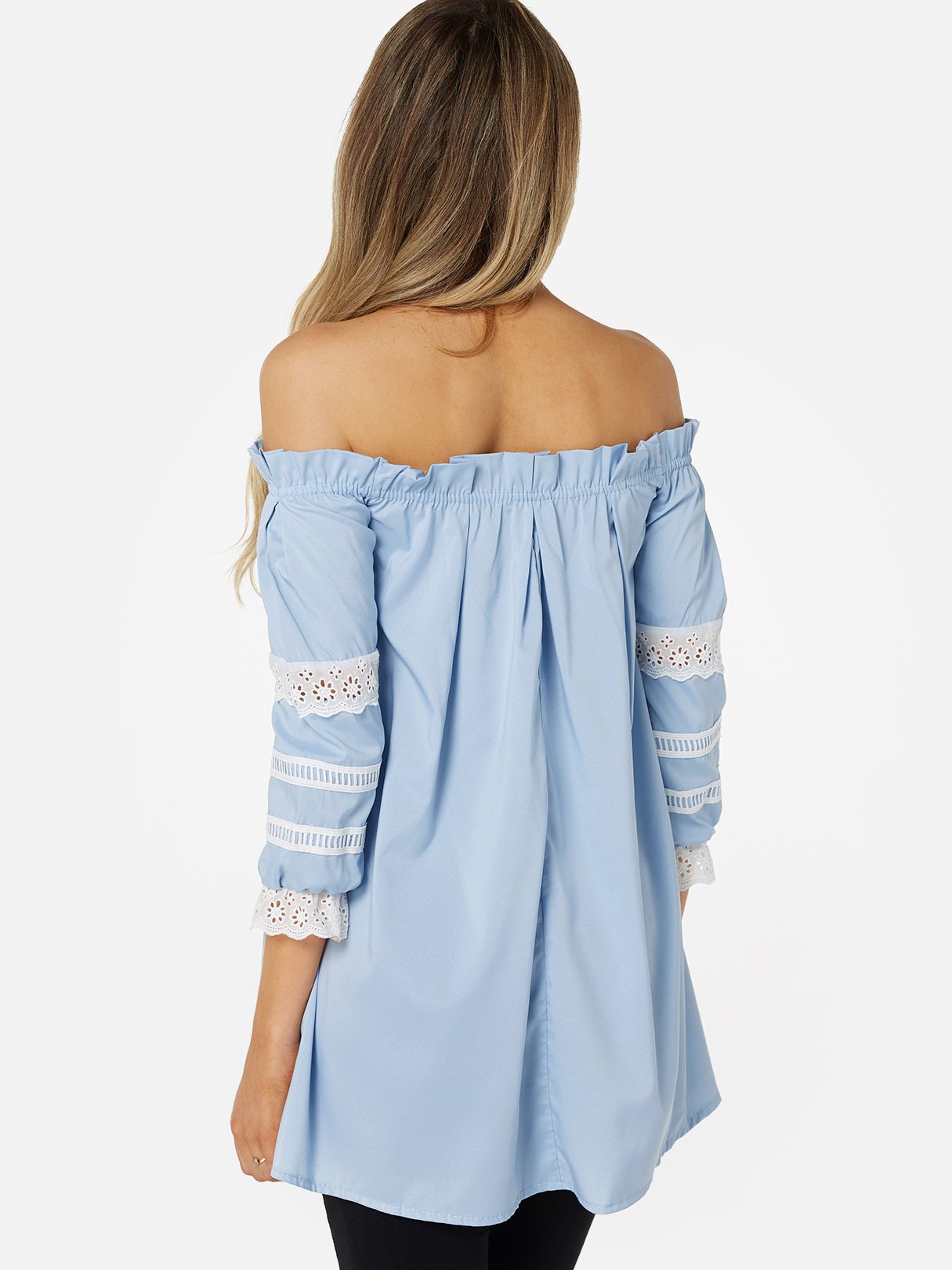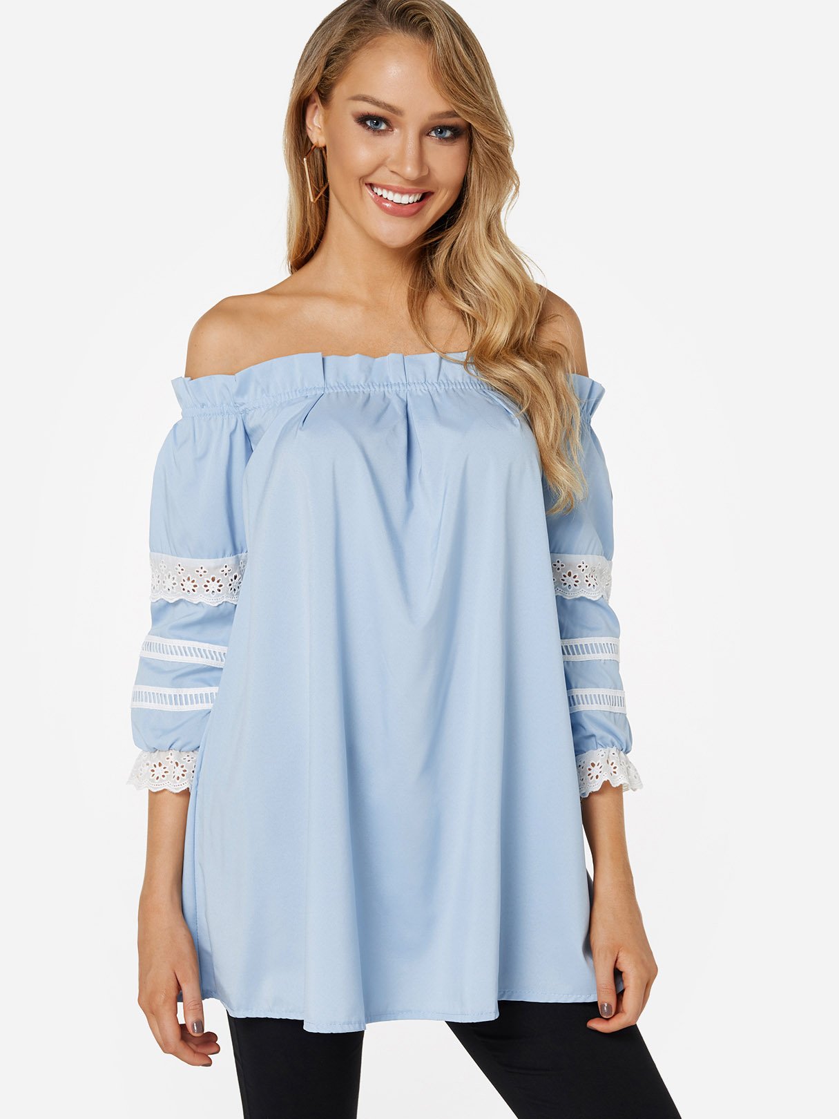 Off The Shoulder Lace 3/4 Sleeve Blue Top
