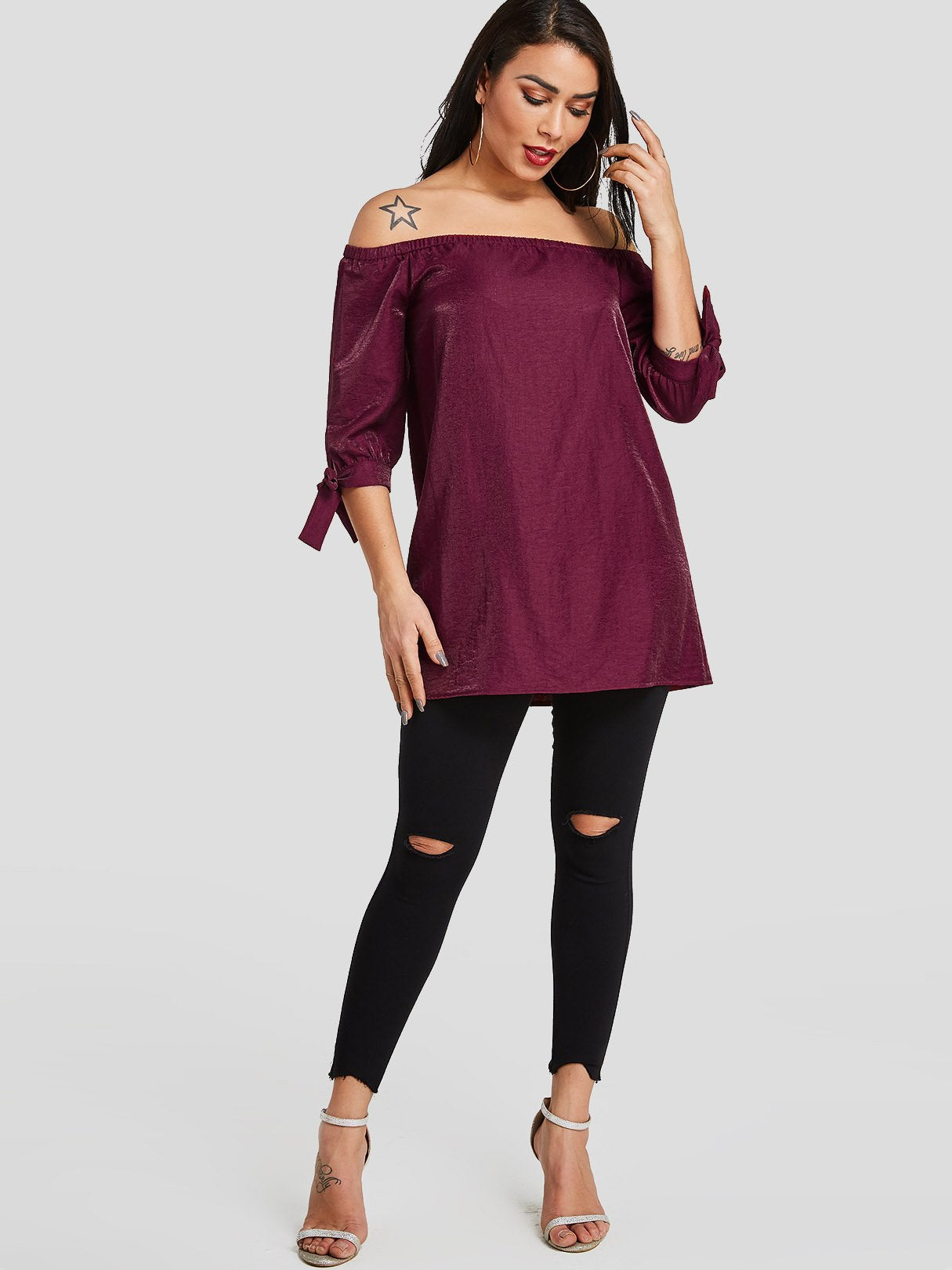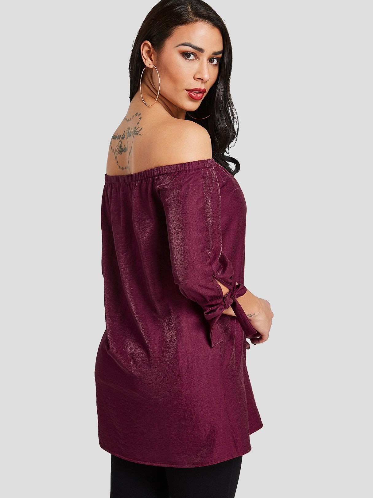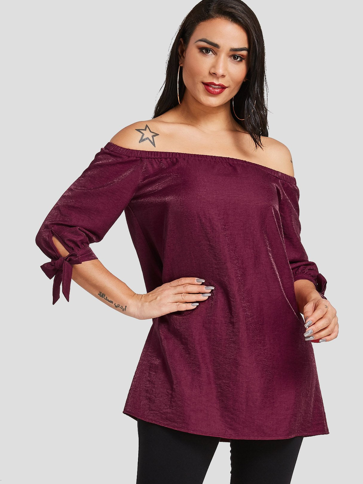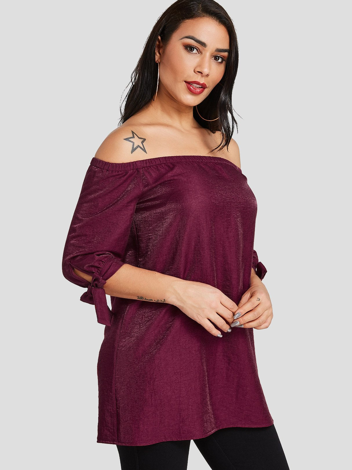 Off The Shoulder Self-Tie Half Sleeve Burgundy Blouses