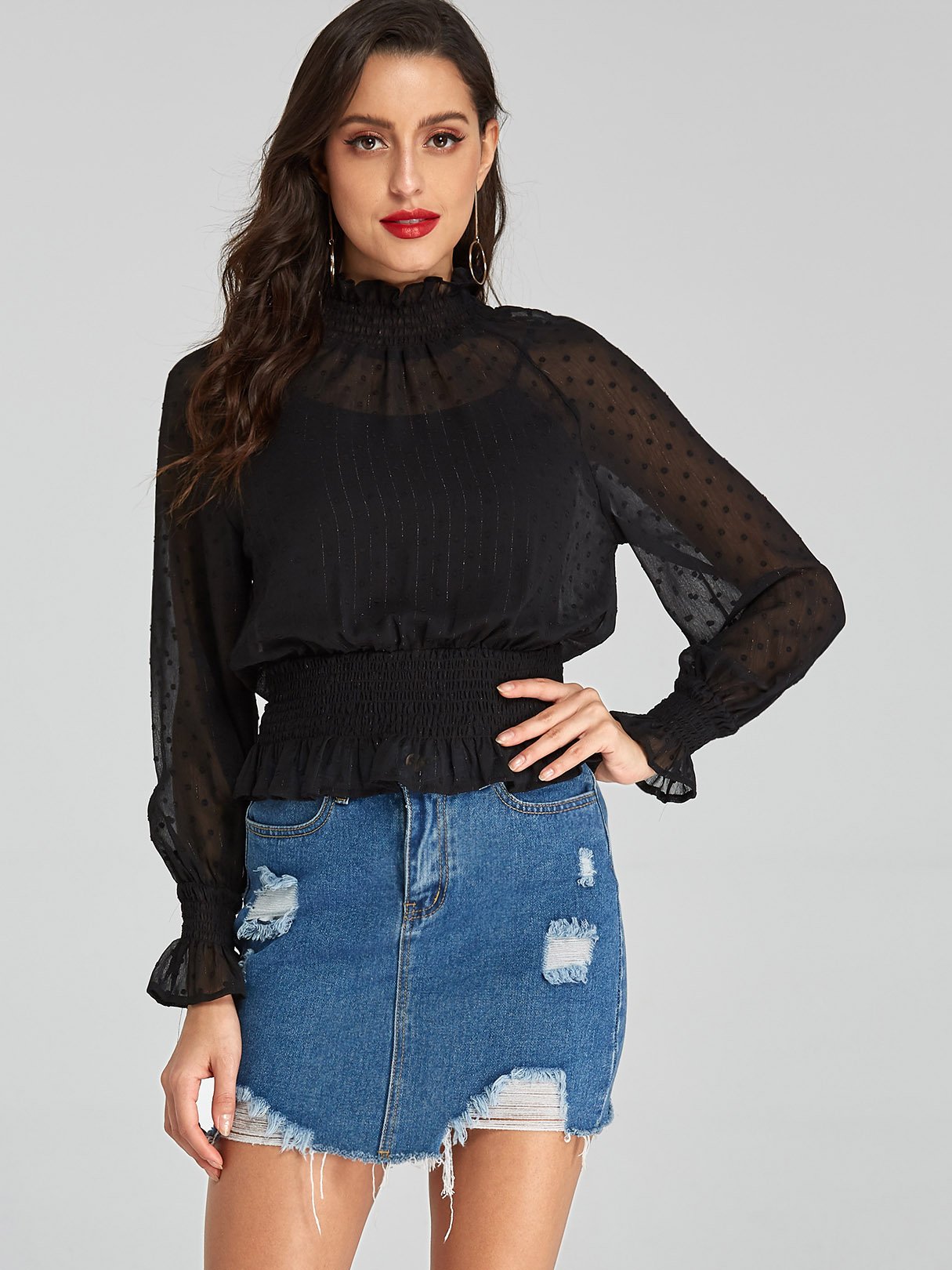 Plain Long Sleeve Black Blouses - Black / S is backordered and will ship as soon as it is back in stock.