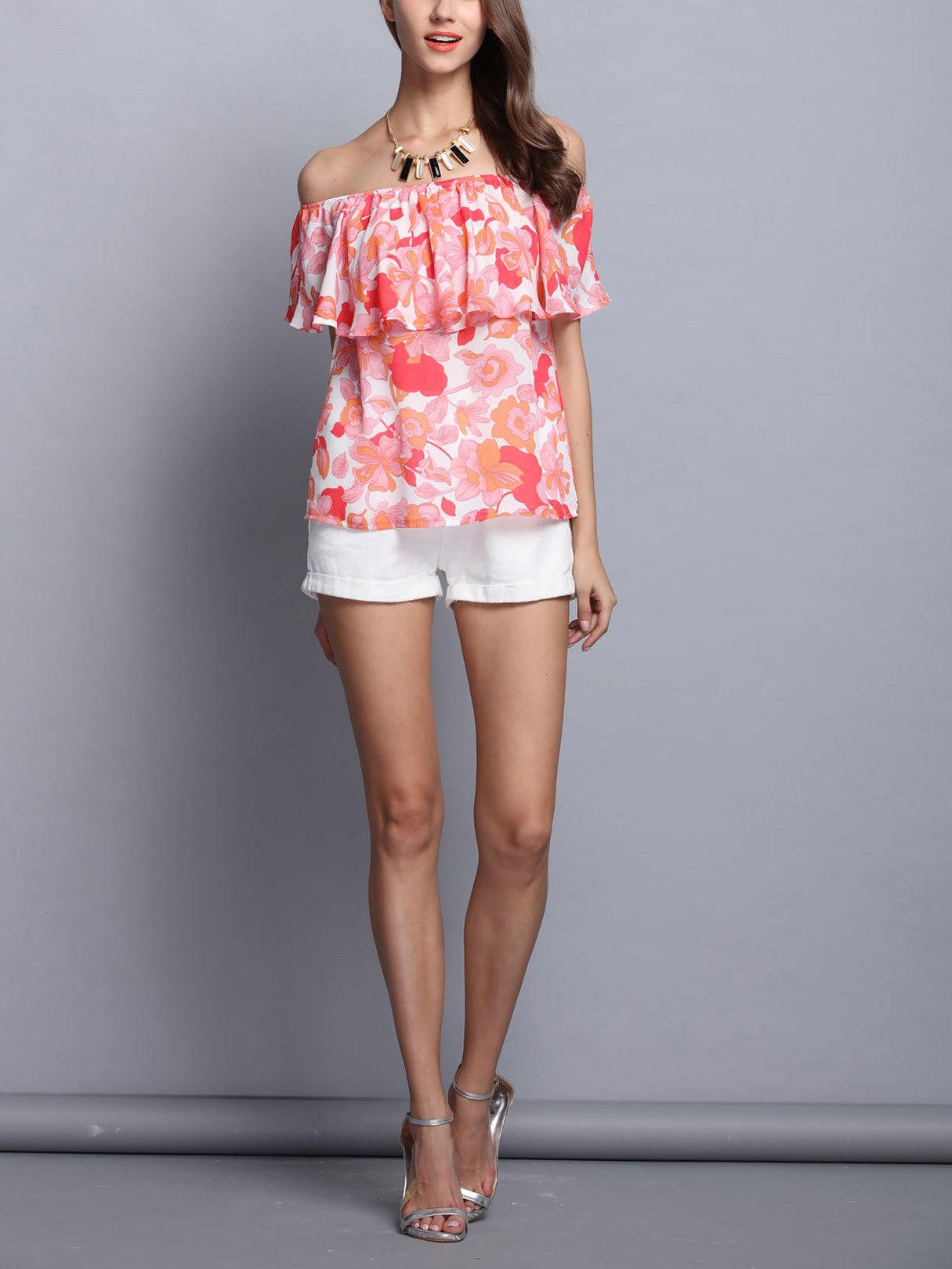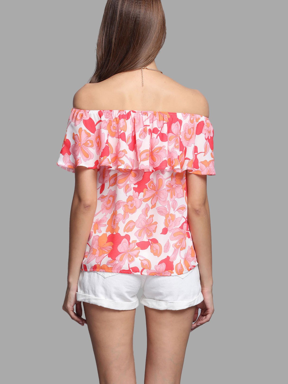 Random Floral Print Off The Shoulder Top with Layered Details