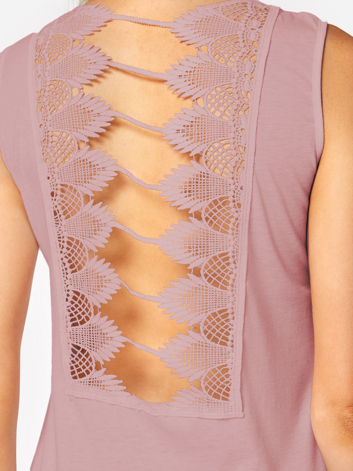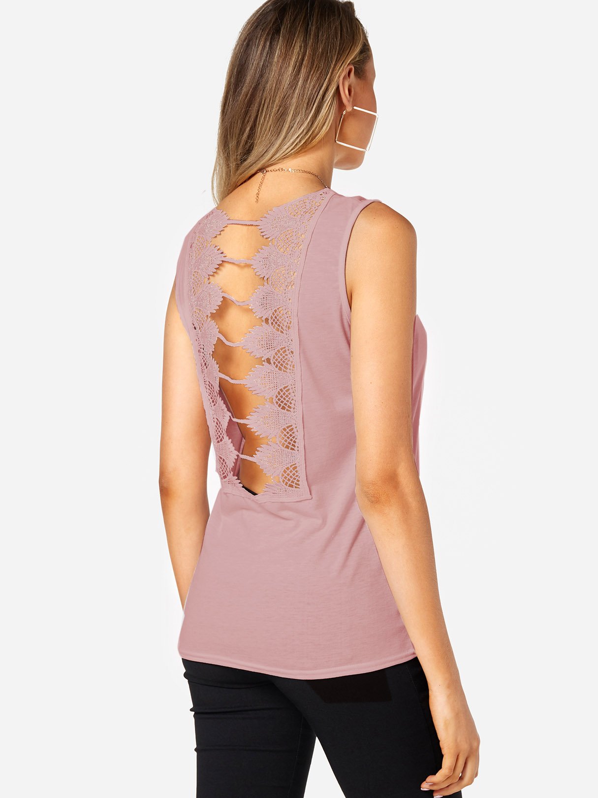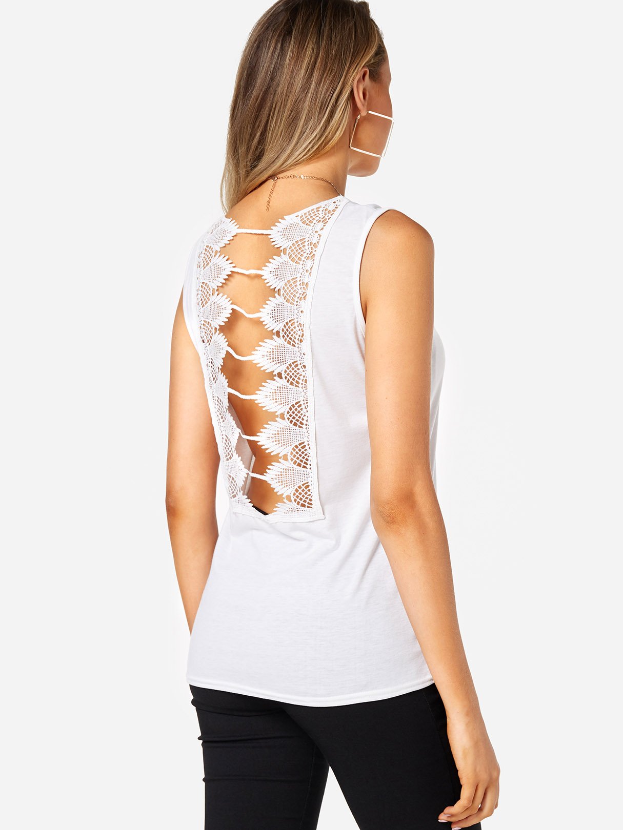 Material:PolyesterNeckline:Round NeckSeason:Spring,Summer,AutumnSleeves:SleevelessStyle:Casual Style,Sexy StyleDetail:Lace,Cut OutFit:Loose Fit