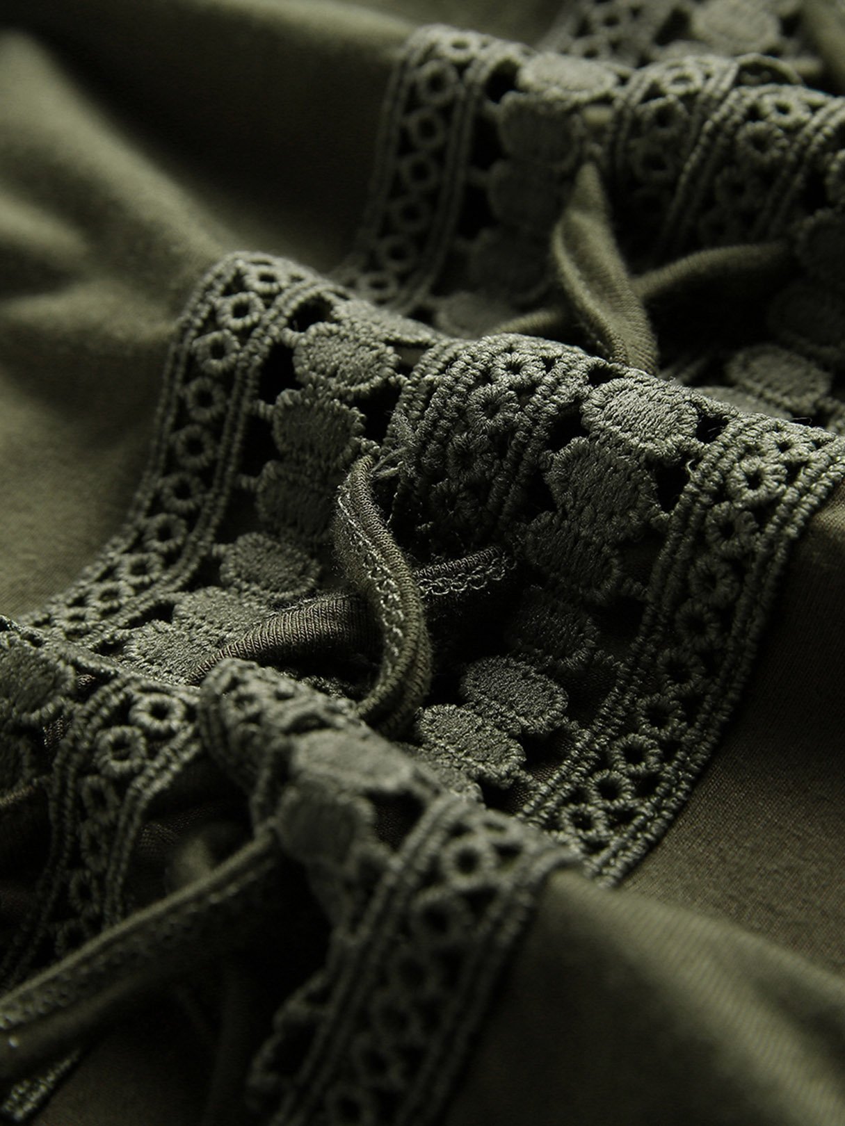 Round Neck Plain Crochet Lace Embellished Lace-Up Criss-Cross Sleeveless Army Green Tank Top