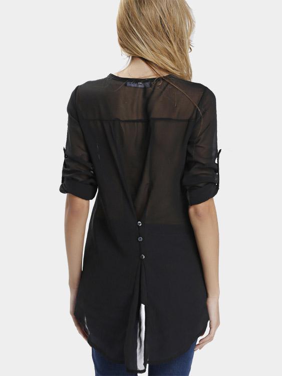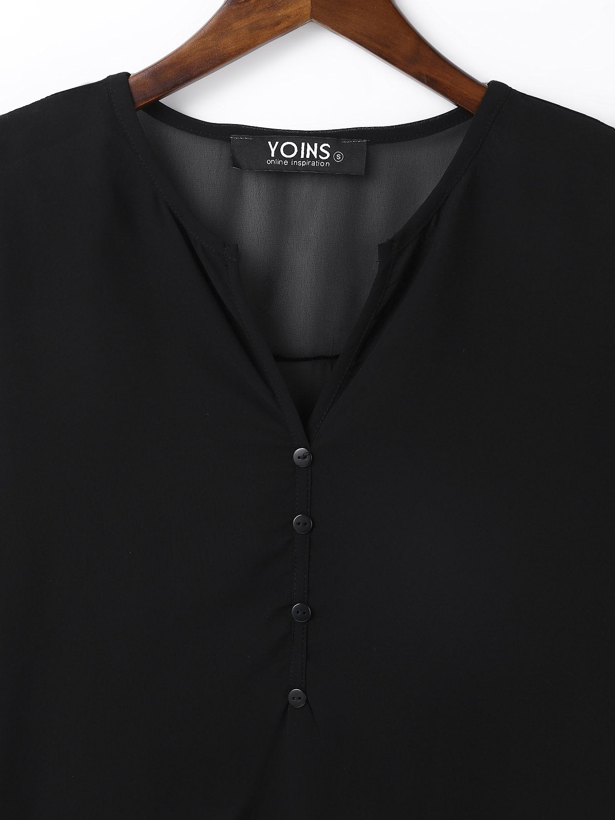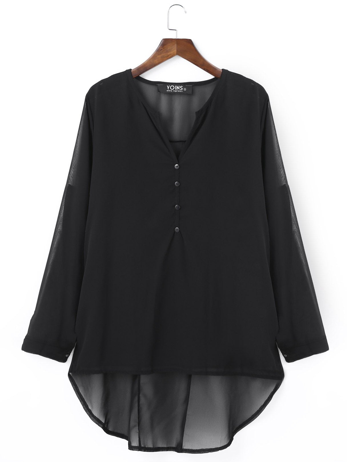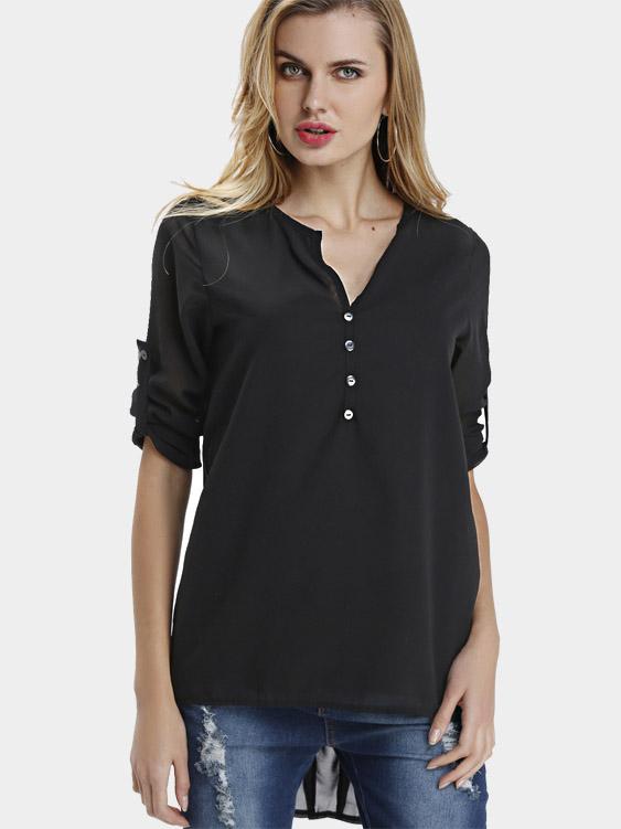 V-Neck Long Sleeves Chiffon Shirt - Black / S is backordered and will ship as soon as it is back in stock.