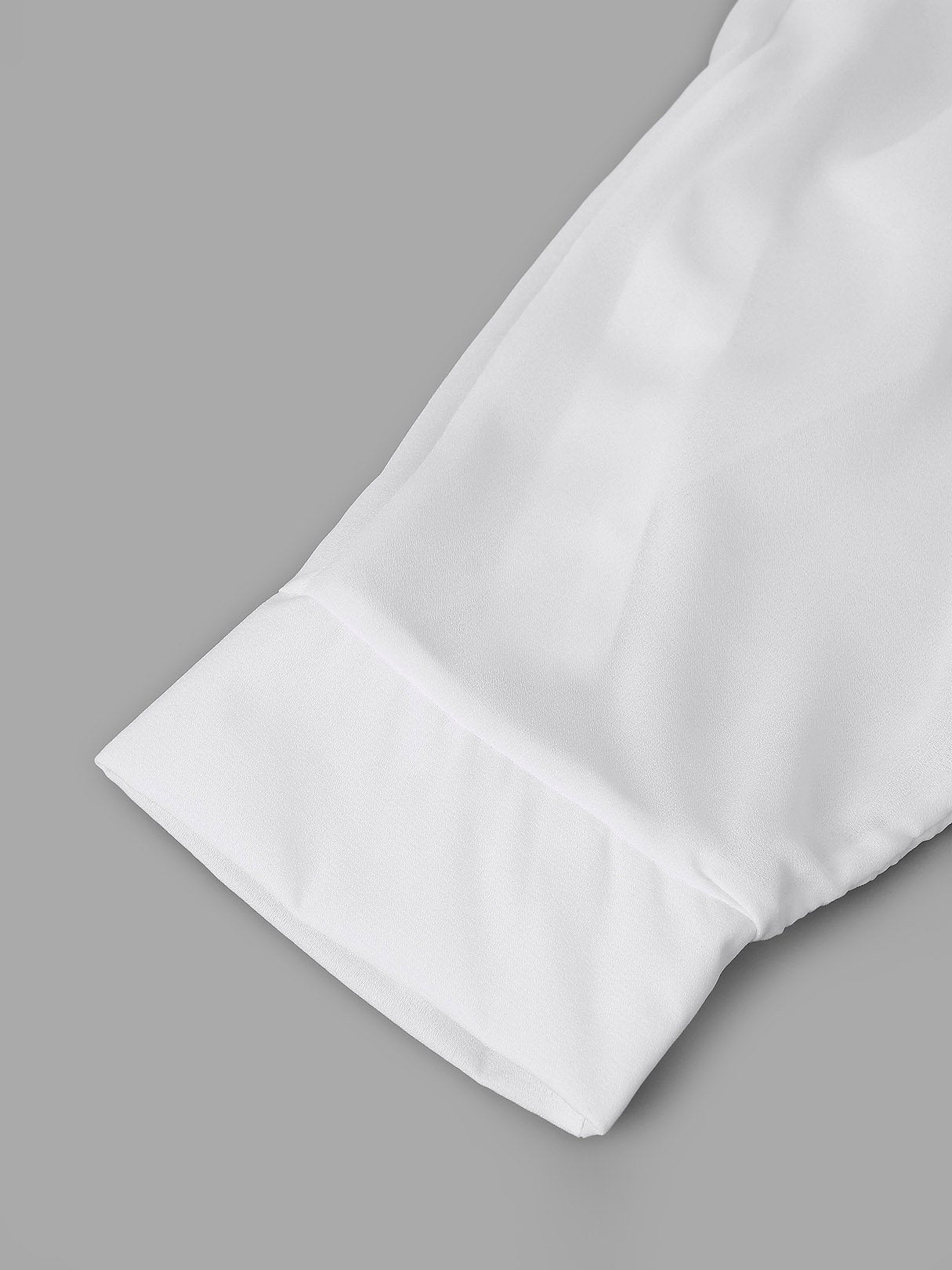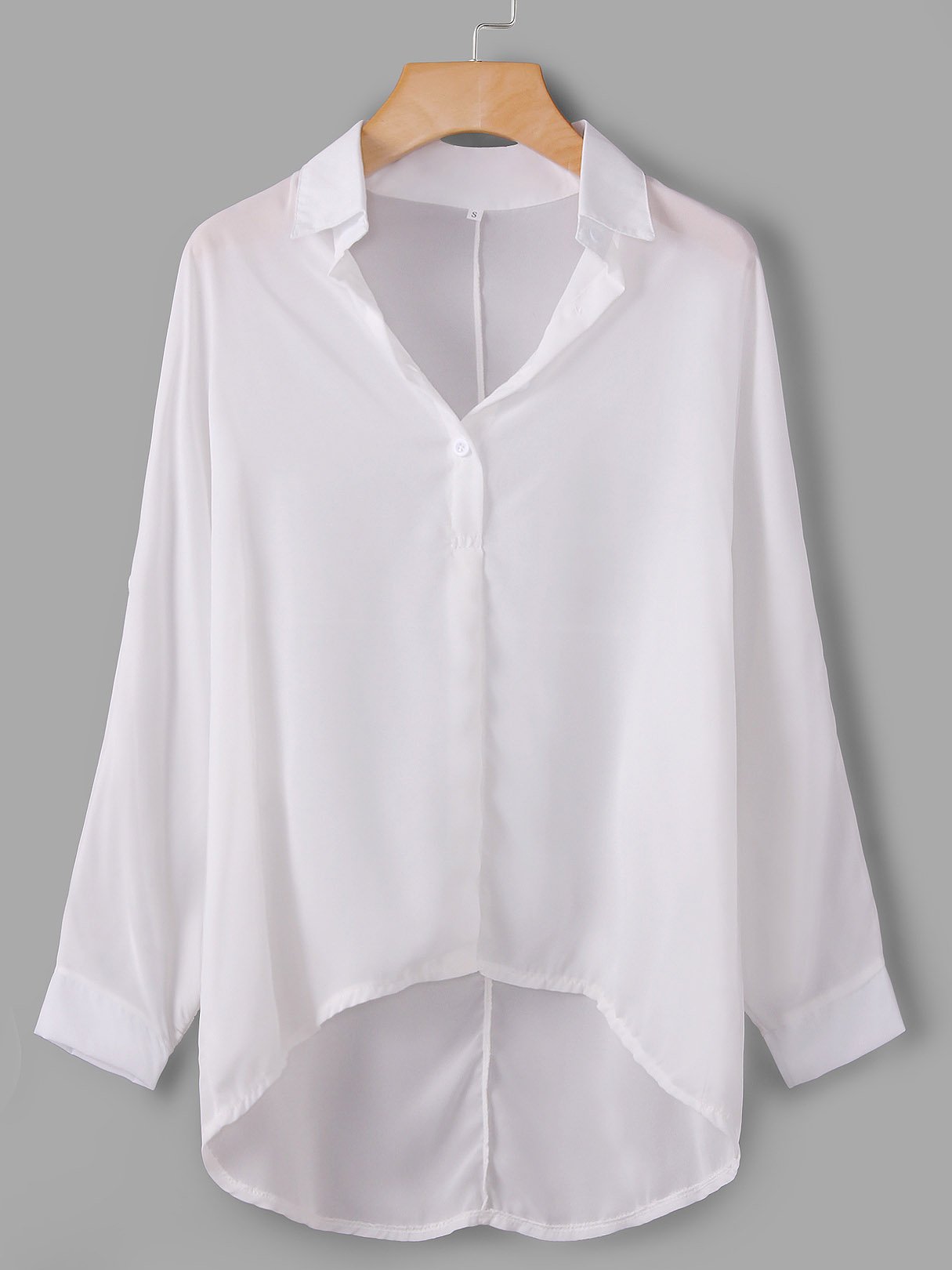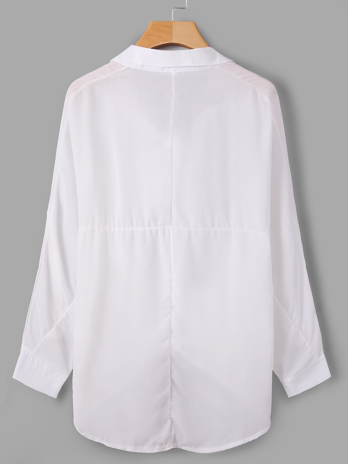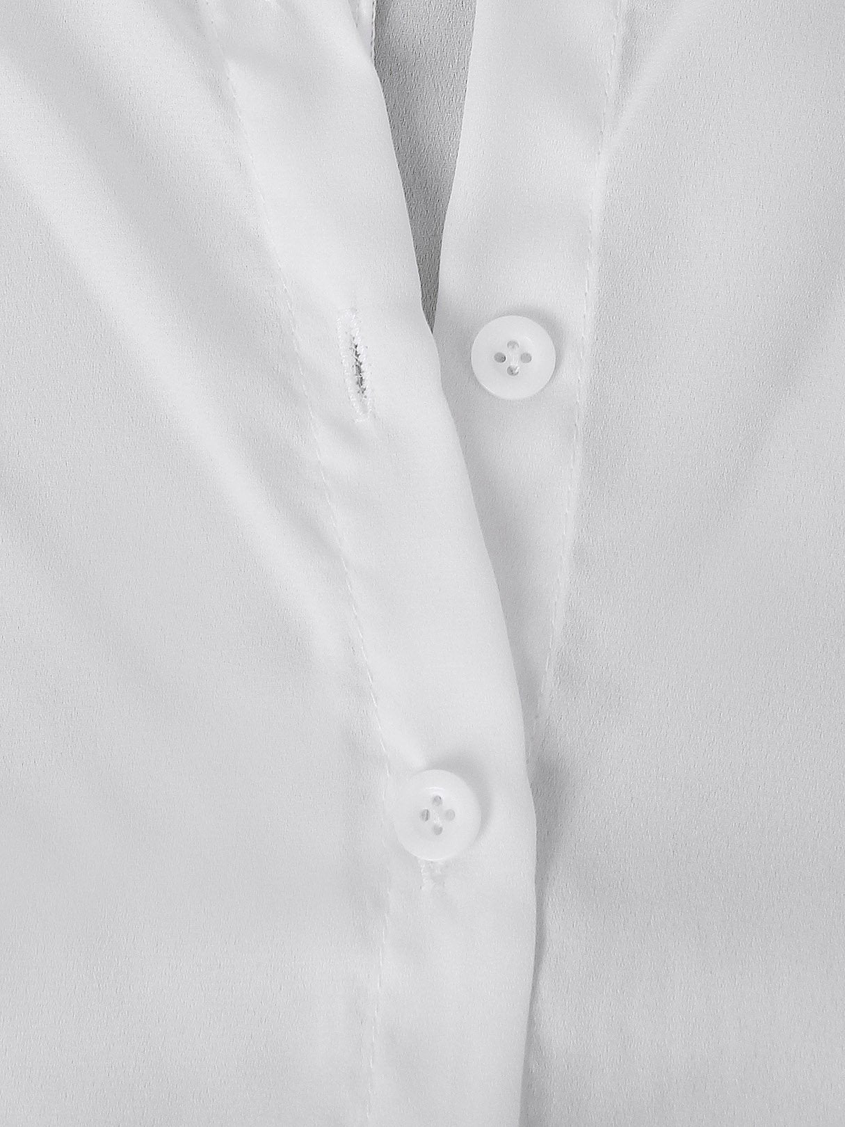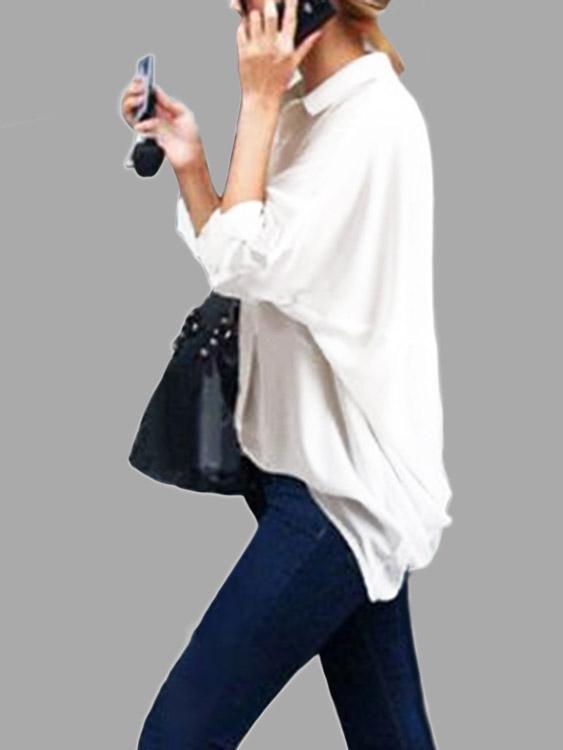 V-Neck Plain Long Sleeve Irregular Hem White Blouses